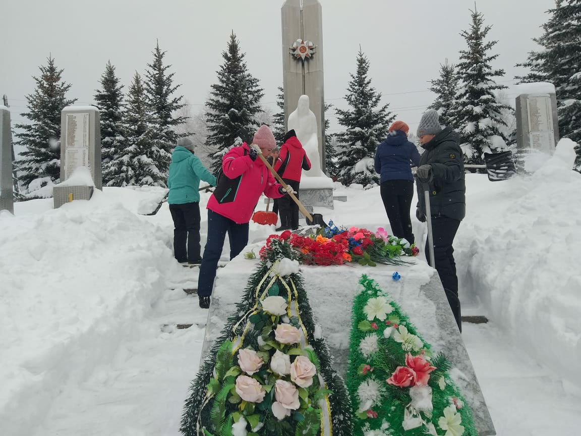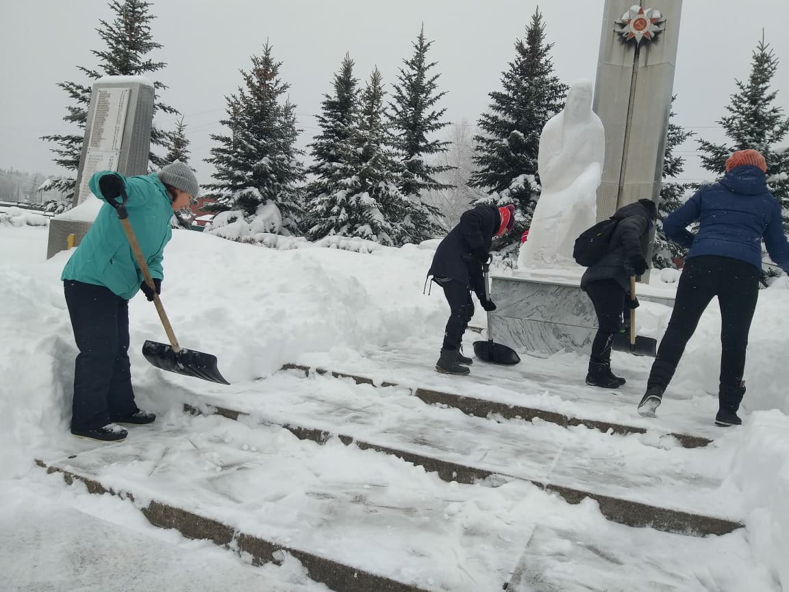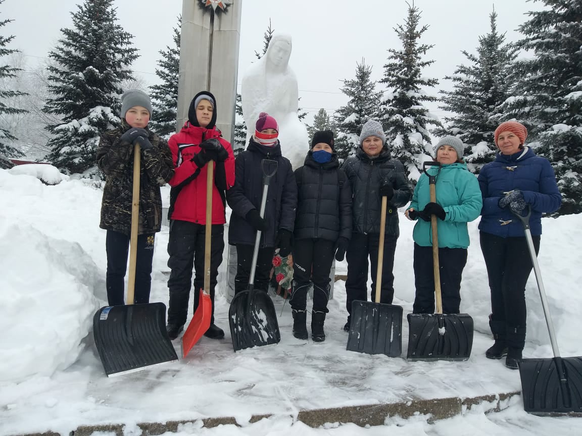 Ребята почистили памятник "Скорбящая Мать" от снега. Молодцы, ребята! Благодарим вас за проделанную работу!!!