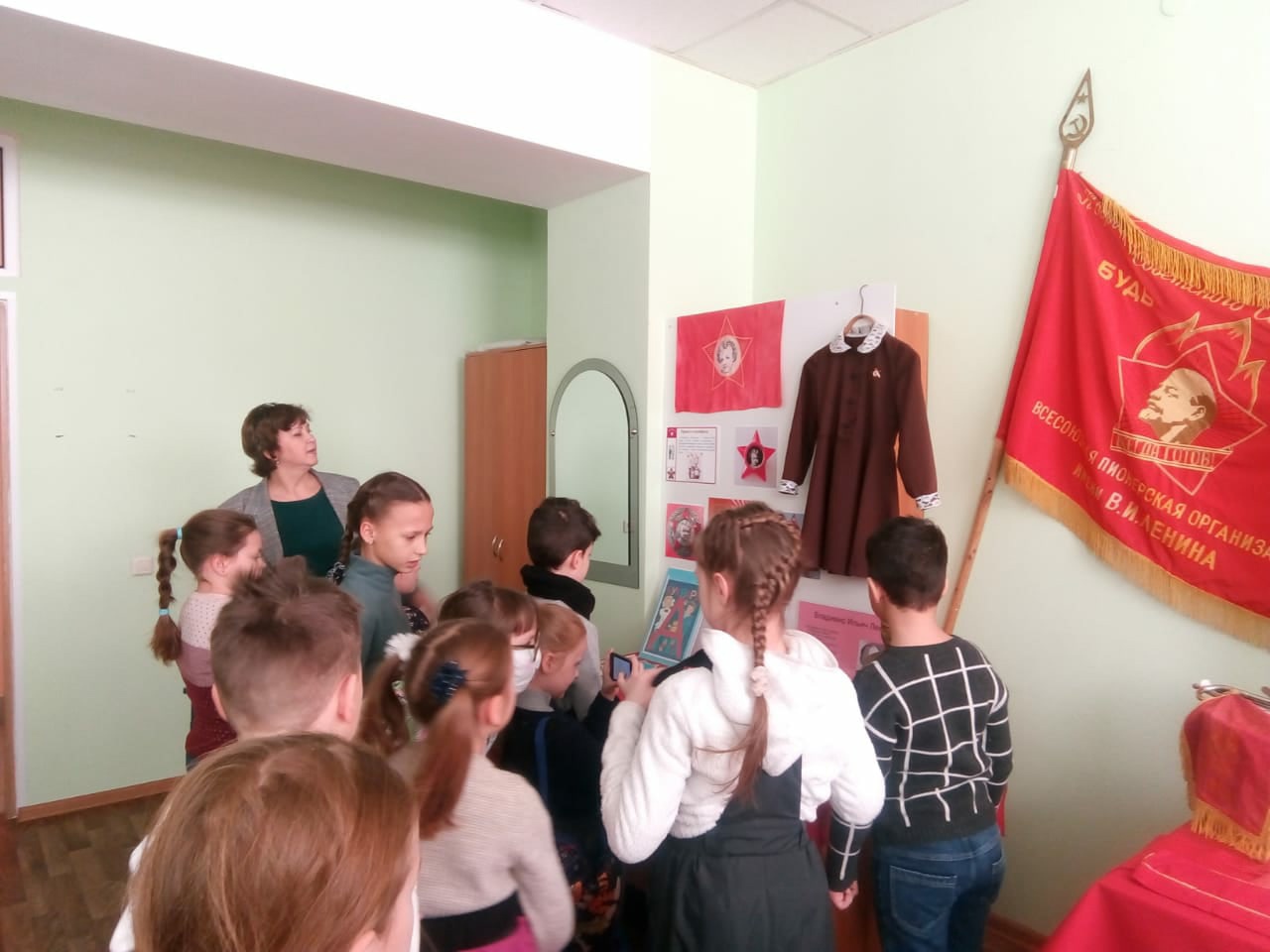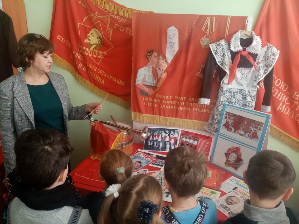 Экскурсию по музею провела Гимазетдинова Р.В., которая увлекательно рассказала детям, кто такие октябрята, пионеры, комсомольцы, также показала атрибуты этих организаций. Затем ребята смогли ознакомиться с новогодними игрушками, гирляндами , которые использовались во времена СССР. Ребята остались в восторге от проведенной экскурсии.