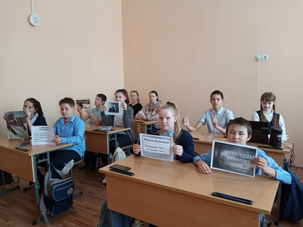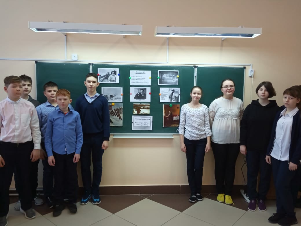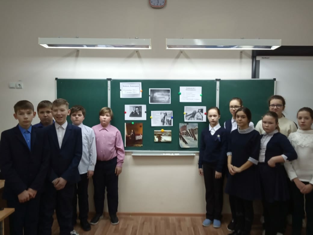 В День снятия блокады Ленинграда в школе для учеников 5-7 классов прошли уроки музыки, посвящённые седьмой симфонии "Ленинградская" Д.Д.Шостаковича.