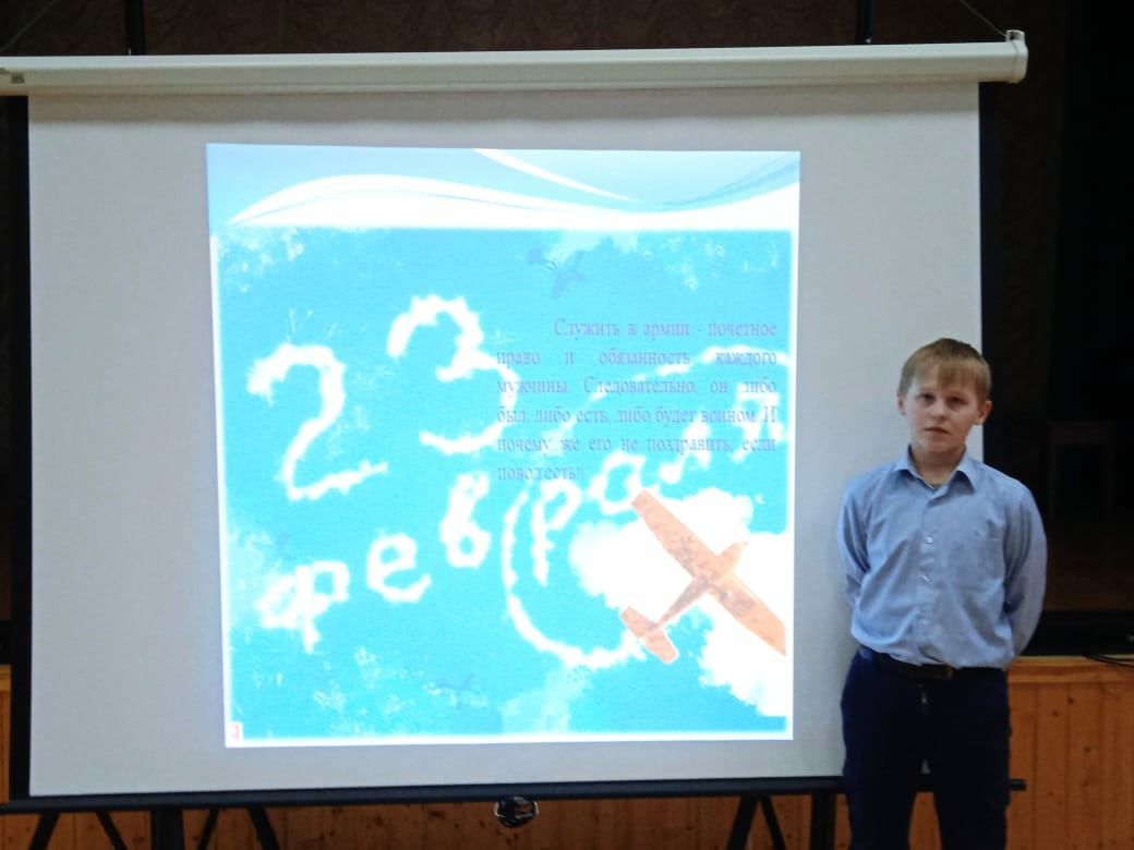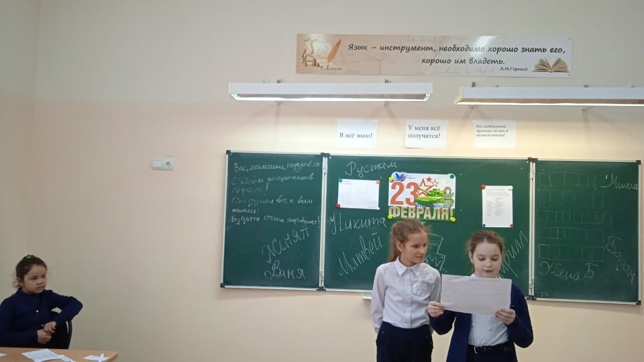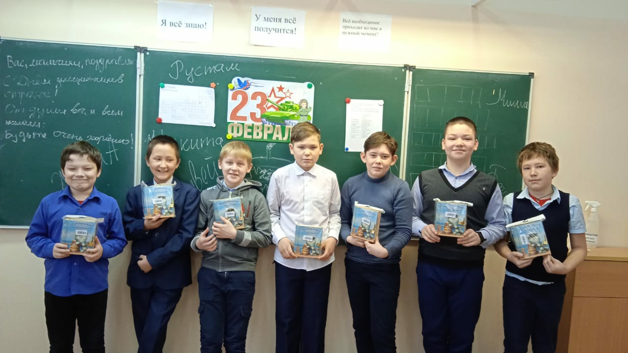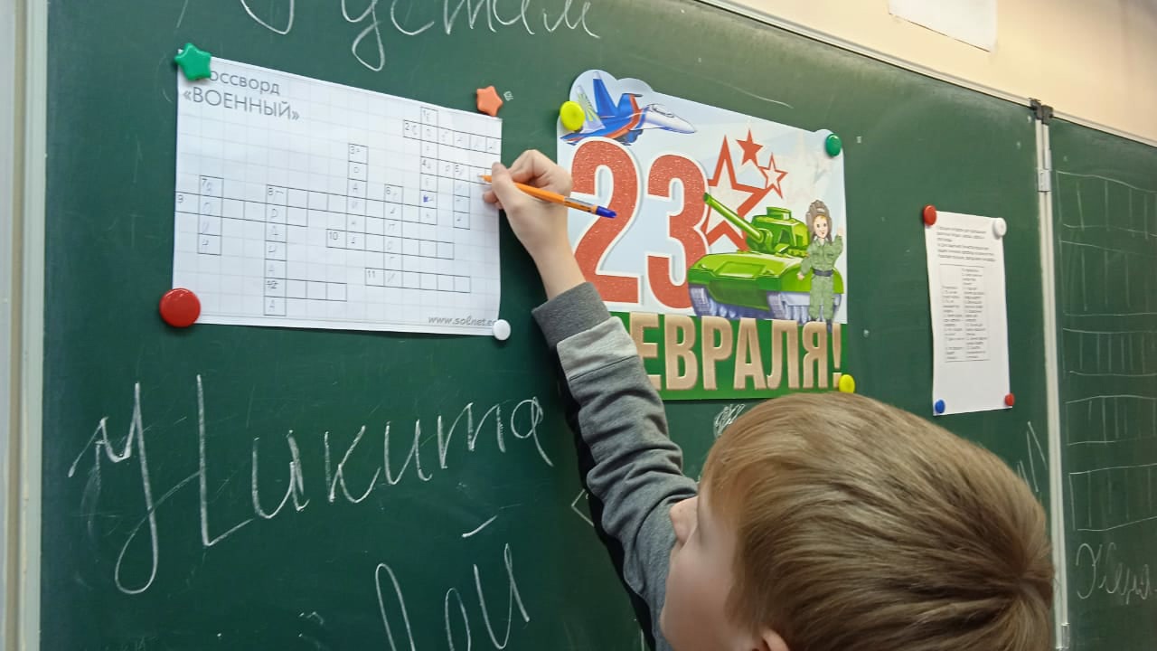 В 5 классе прошел классный час "Конкурсная программа к 23 февраля". Классный руководитель Шайдуллина Надежда Альбертовна вместе с девочками класса подготовили игровую программу для мальчиков. Ребята играли в "Поле чудес", разгадывали кроссворд и загадки. Затем девочки поздравили мальчиков с наступающим праздником, пожелали успехов в учебе, достижений и побед в различных конкурсах и соревнованиях.
