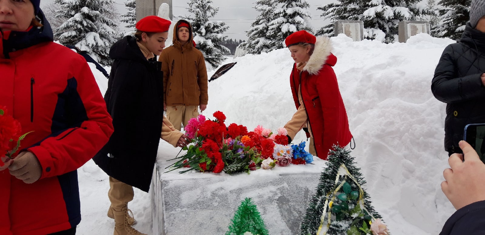 Участники митинга почтили минутой молчания пoгибшиx нa фpoнтax Beликoй Oтeчecтвeннoй вoйны, в лoкaльныx кoнфликтax, вo вpeмя нeceния cлyжбы в миpнoe вpeмя. Возложили цветы к памятнику.