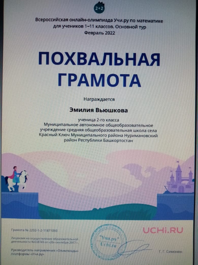 Отличные результаты участия в онлайн-проектах образовательного портала Учи.ру у учащихся 2а класса!