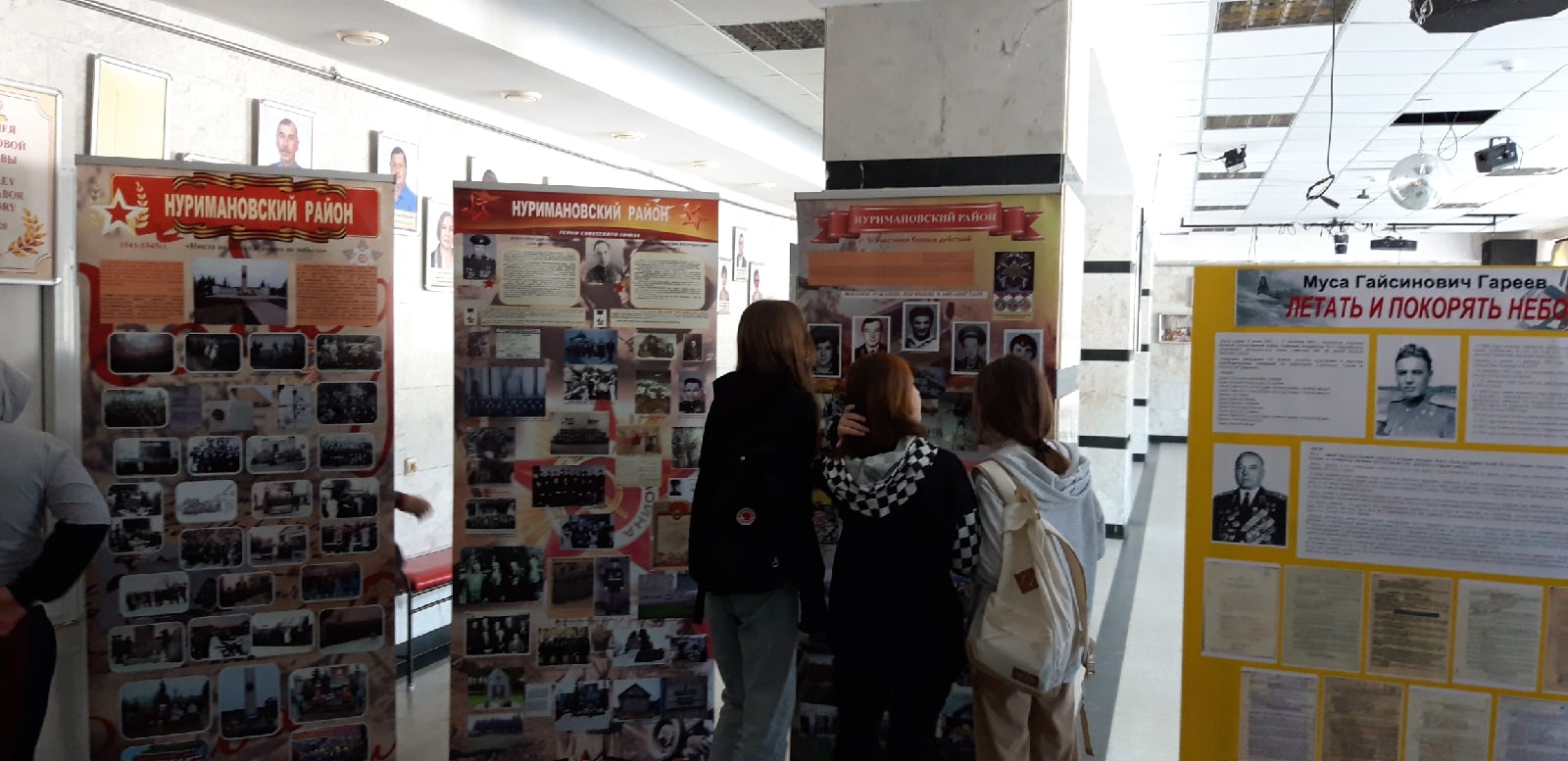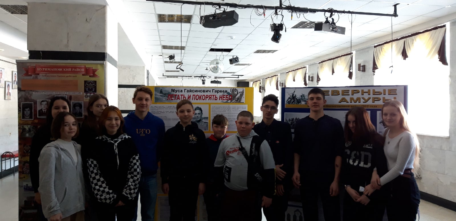 Ребята посетили выставку "Герои Нуримановского района и Республики Башкортостан", посмотрели художественный фильм "Мария. Спасти Москву".
