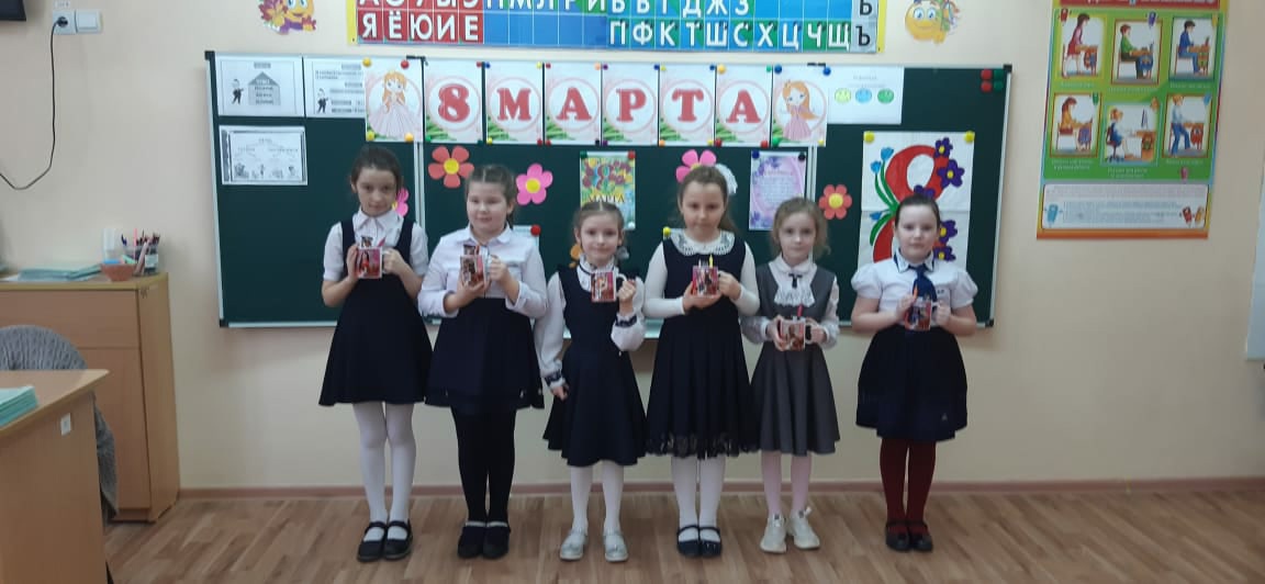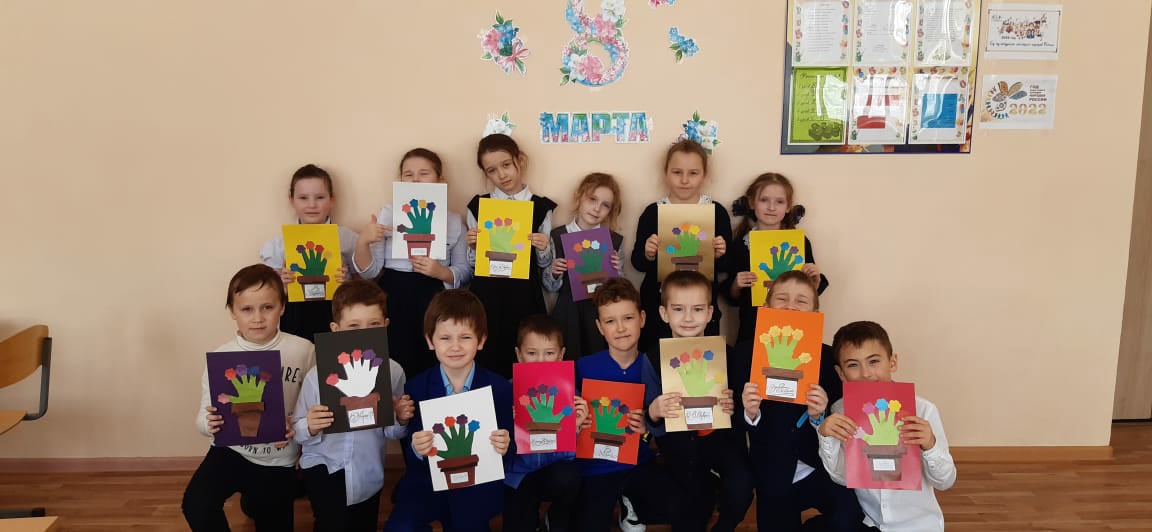 Самые маленькие наши ученики - первоклассники с особой любовью и старанием изготовили красочные открытки для своих дорогих мам. Мальчики подготовили праздничные выступления для девочек.