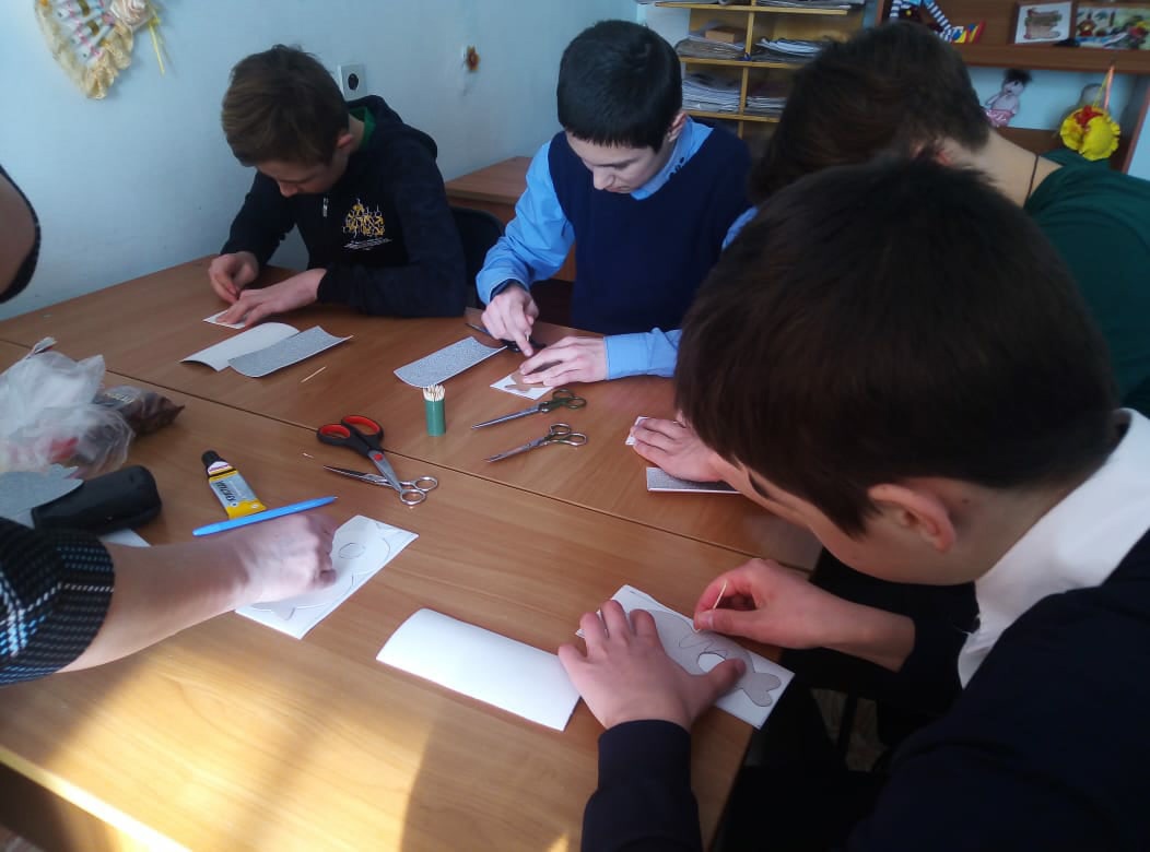 Наши юнармейцы 8б класса принимают активное участие в праздновании женского дня - 8 Марта. Мальчики посетили сельскую модельную библиотеку, где сотрудники библиотеки показали мастер-класс по изготовлению праздничного сувенира для девочек. Ребята поздравили своих одноклассниц.