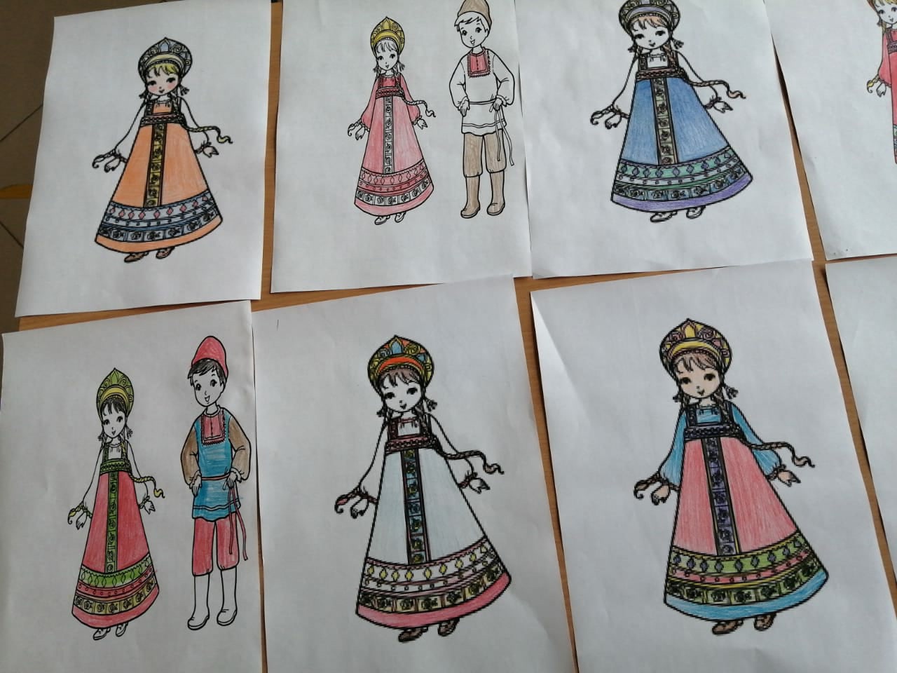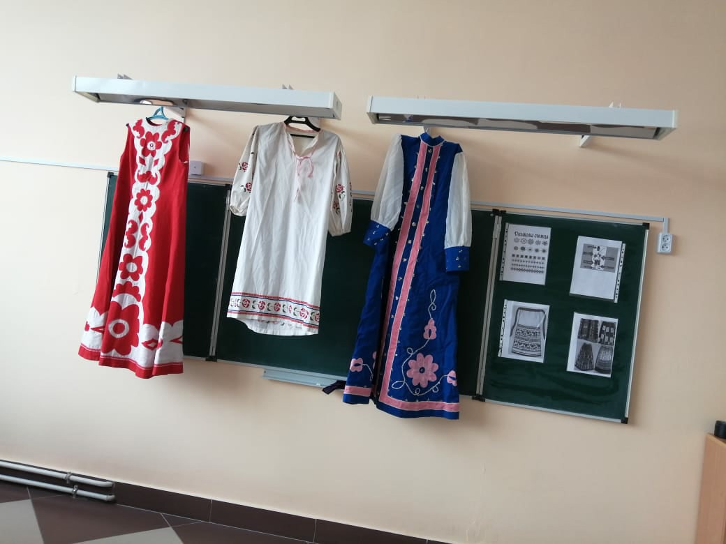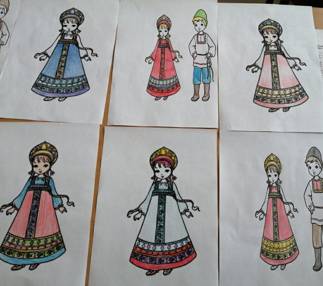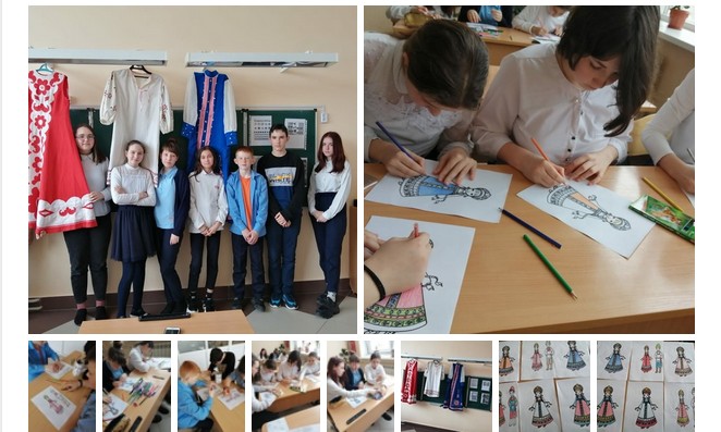 В 7б классе был проведен классный час "Национальный костюм". Классный руководитель Ураева Фарида Анваровна познакомила ребят с особенностями русского народного костюма, с его художественной ценностью, с историей костюмов, со значением орнаментов, изображенных на нарядах. В конце урока была оформлена выставка рисунков.