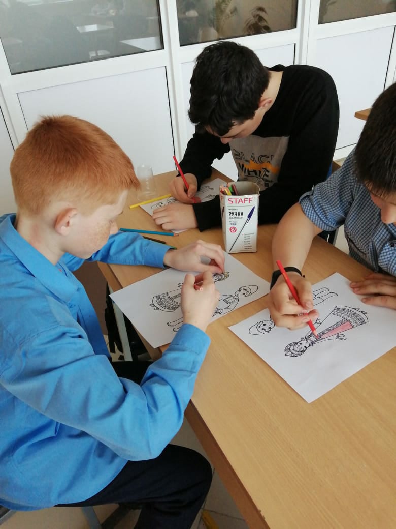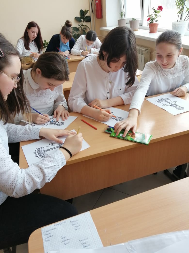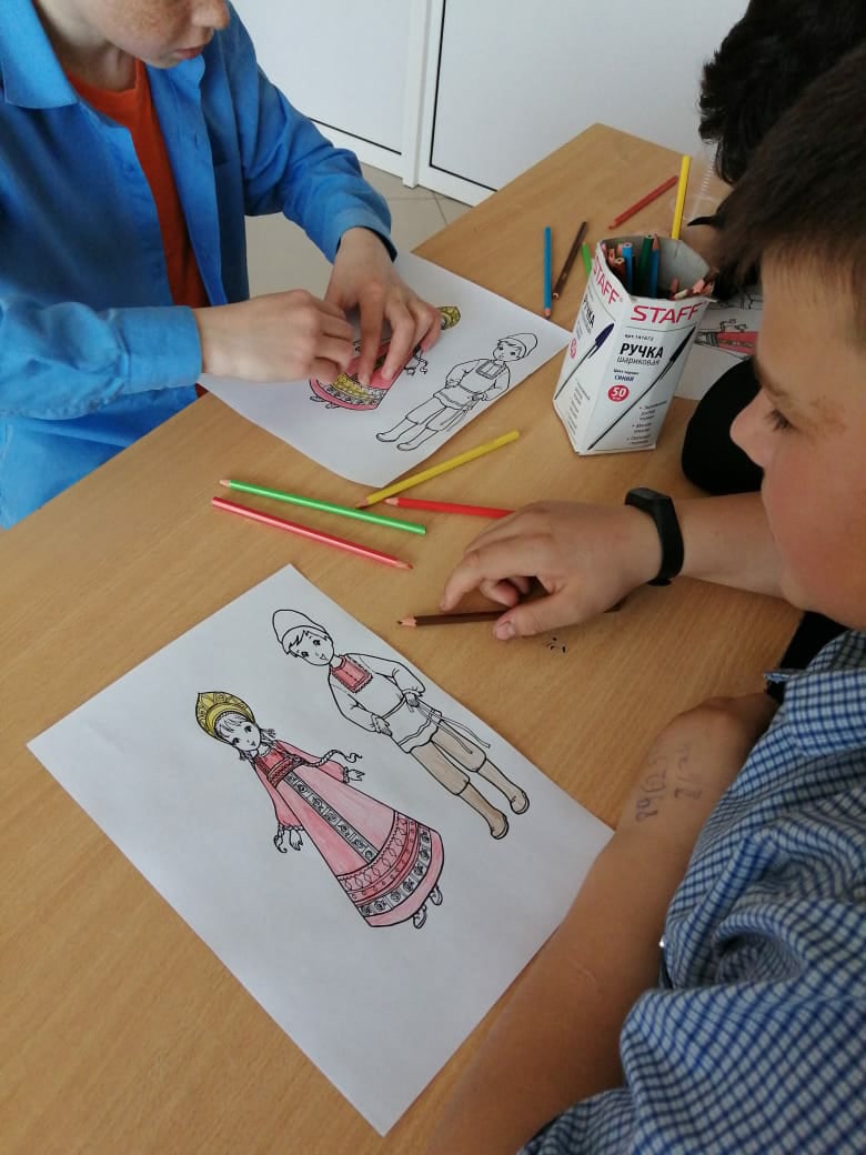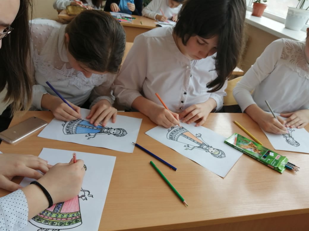 В 7б классе был проведен классный час "Национальный костюм". Классный руководитель Ураева Фарида Анваровна познакомила ребят с особенностями русского народного костюма, с его художественной ценностью, с историей костюмов, со значением орнаментов, изображенных на нарядах. В конце урока была оформлена выставка рисунков.
