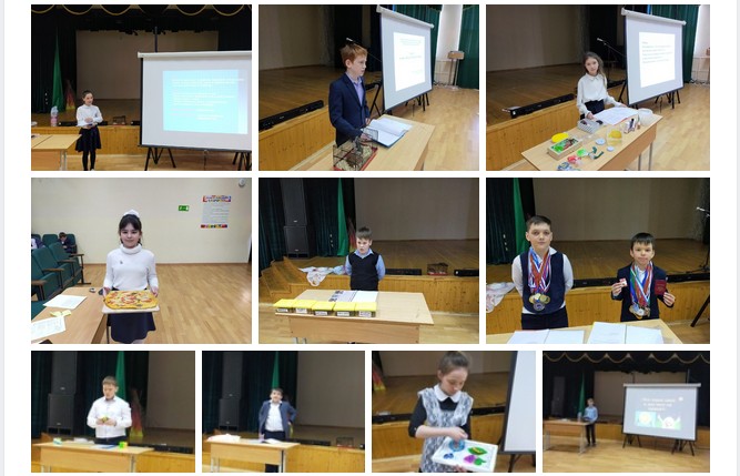 Все они заметно волновались и спешили поскорее показать результаты своих исследований. Все работы были интересными, ребята выглядели очень достойно, зрители их увлеченно слушали их. Были представлены проекты: "Спорт в нашей жизни" (Александров Глеб и Костин Иван), "Что такое смех" (Иконников Василий), "Мои джунгарские хомяки" (Егошин Роман), "Фантазии из соленого теста" (коллективная работа), "Скворечник" (Ахматдинов Тимур), "Кубик Рубика - гимнастика для ума" (Новокшонов Кирилл), "Пицца - это просто и вкусно" (Климина Амелия), "Лекарственные растения" (Газизов Ростислав), "Мыло ручной работы" (Хурматуллина Янина), "Удивительная соль" (Бадретдинова Аделина).