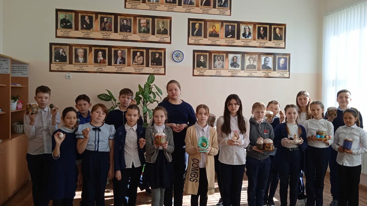 На уроке родной русской литературы учащиеся 5 класса познакомились с историей появления народного православного праздника Пасха.