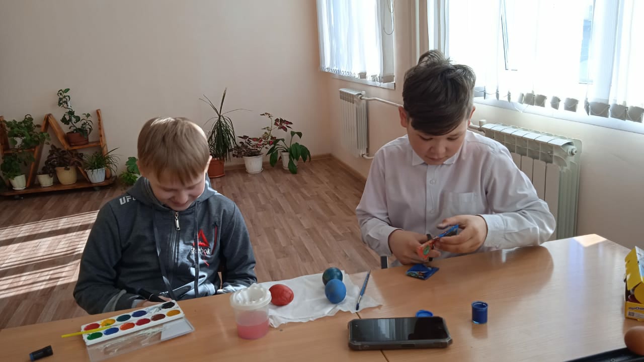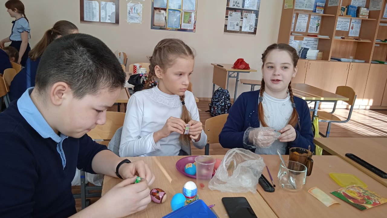 Девочки и мальчики разрисовывали и красили вареные яйца, с удовольствием наклеивали картинки и стразы на них, а потом обменивались друг с другом. Ребята поиграли в веселую традиционную игру с пасхальными яйцами, которая завершилась победой Жеребцова Н. После игр учащиеся перешли к чаепитию, угощая одноклассников куличами и сладостями. Довольные и счастливые, пятиклассники уходили домой с угощением для семьи.