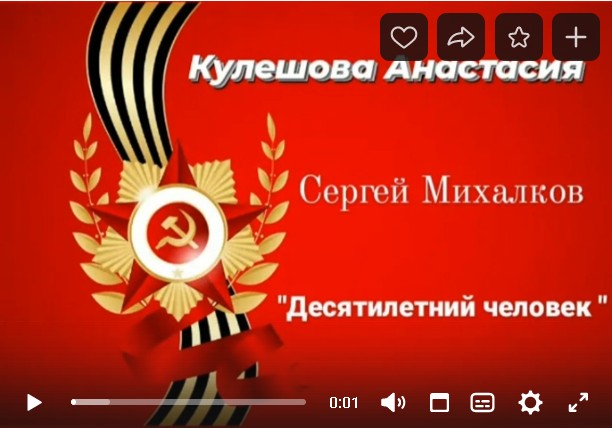Кулешова Анастасия, ученица 7а класса. Стихи о войне
