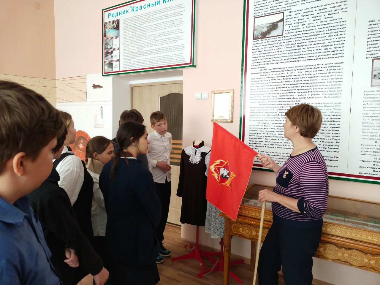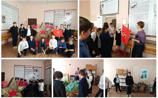Сегодня ученики 6б класса посетили школьный музей. Руководитель школьного музея Лариса Алексеевна Луцкая рассказала ребятам об истории родного села, о страницах прошлого в развитии нашей школы, напомнила, что сегодня - 19 мая исполняется 100 лет Пионерской организации, в рядах которой состояли очень многие школьники из поколений их родителей, бабушек и дедушек.