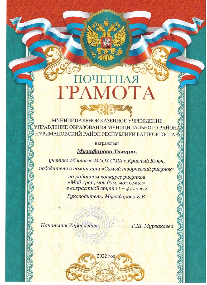 - победителем в номинации "Самый творческий рисунок " стал Музафаров Тимур (руководитель Музафарова Е.В.);