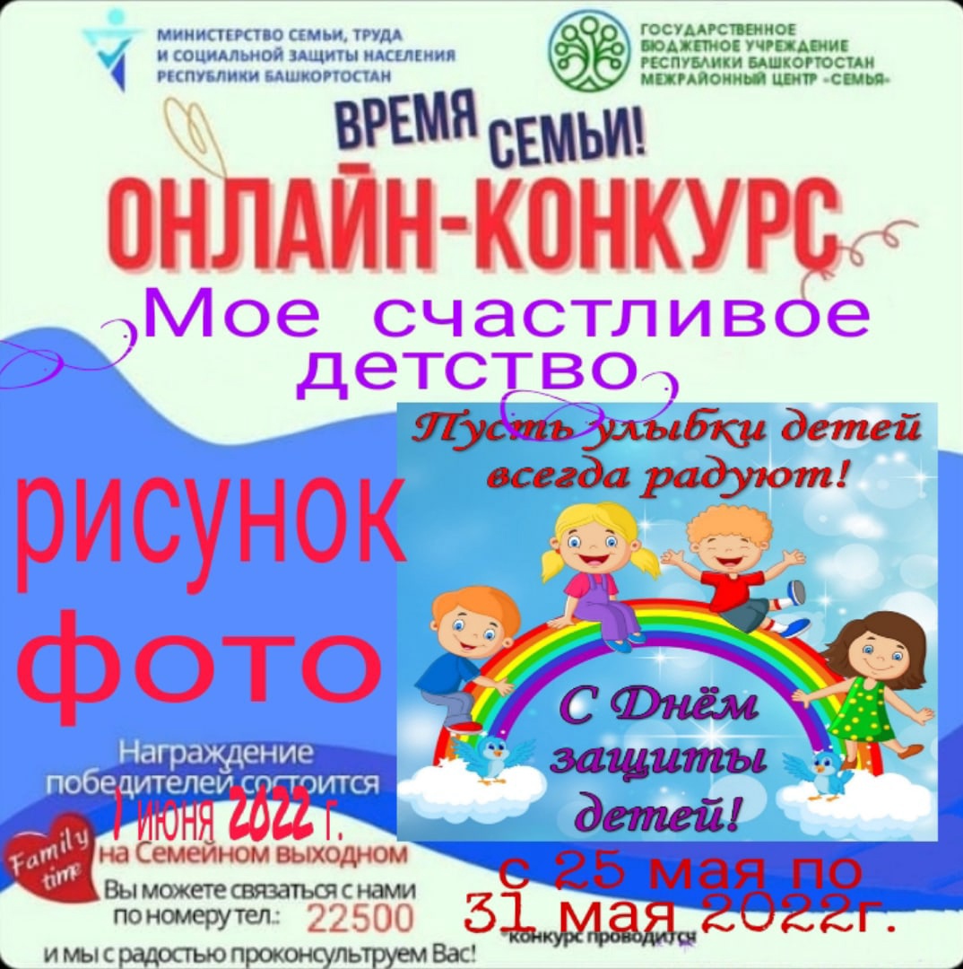 В рамках проекта "Время семьи" служба семьи в Нуримановском районе запускает конкурс "Мое счастливое детство" с 25 мая по 31 мая 2022 года))