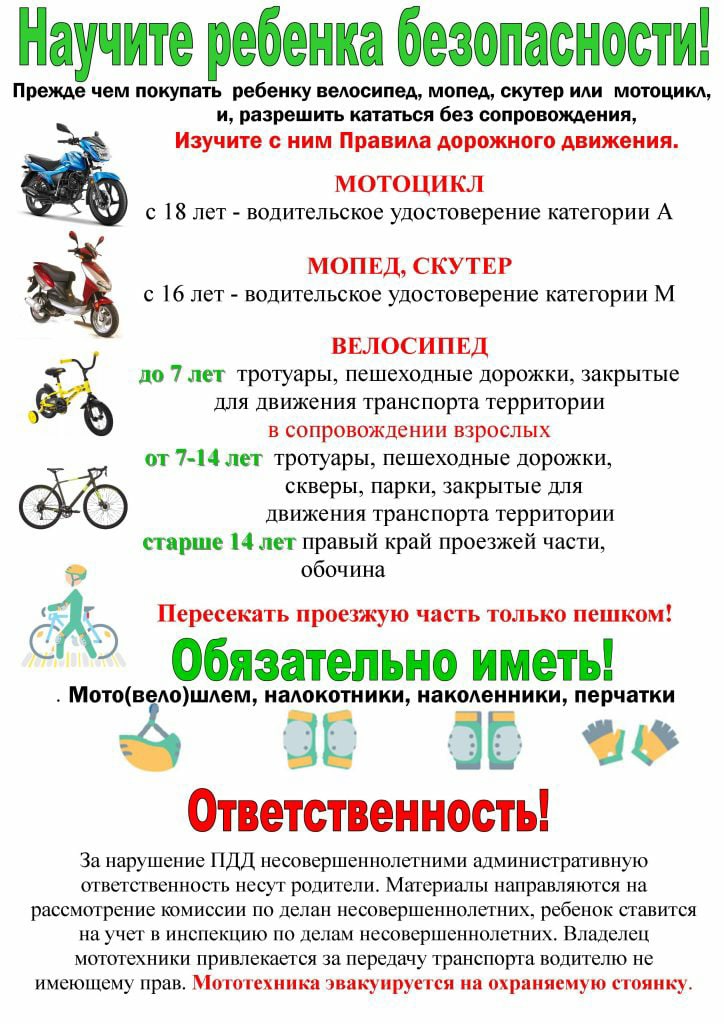 6.Не разрешать детям самостоятельно управлять авто- и мототранспортом.