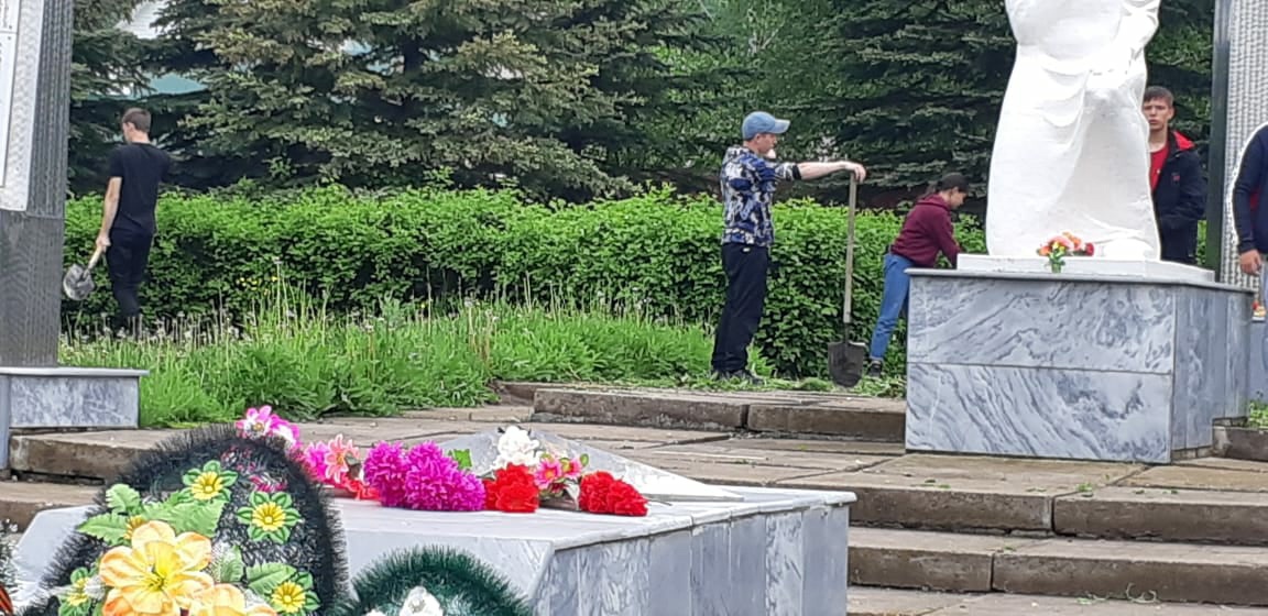 Сегодня ребята из Лагеря труда и отдыха убрались на Памятнике "Скорбящая Мать"
