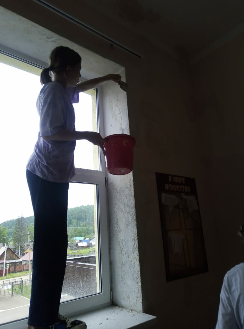 Работа на пришкольном участке продолжается. Воспитанники трудового лагеря приводят в порядок клумбы, уголок с лекарственными растениями. Также ребята под руководством воспитателей красят стены в кабинетах.
