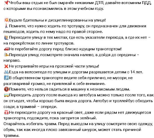 Памятка по ПДД во время летних каникул.