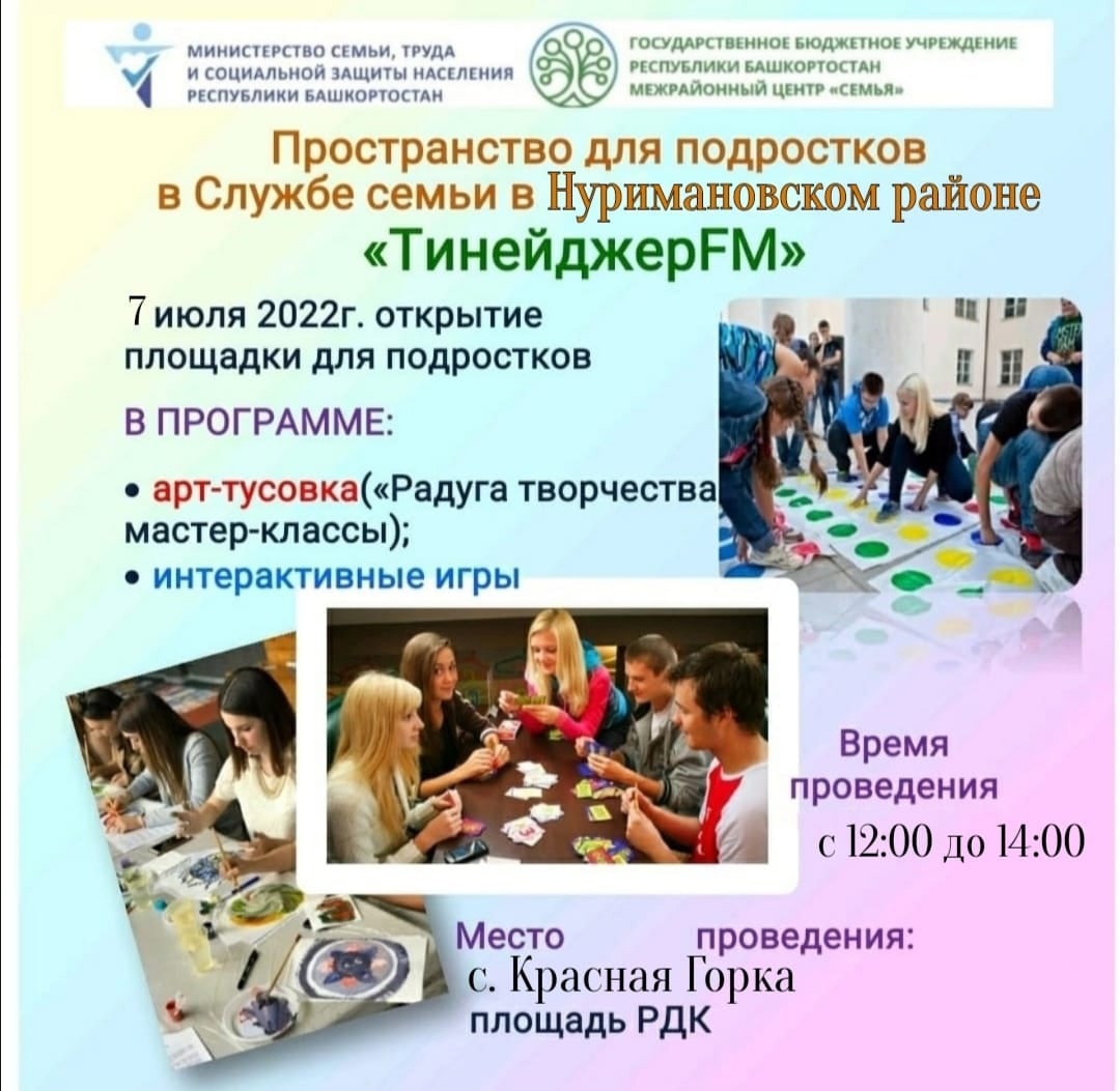 7 июля 2022 г. в службе семьи в Нуримановском районе открывается пространство для подростков с 12 до 18 лет.