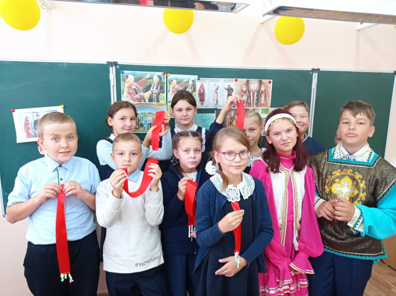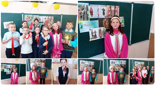Сегодня, 8 сентября, уроки башкирского языка в 4 классах были посвящены теме «Национальный костюм – наследие моего народа». На уроках учитель Арбузова Рамзиля Фирдаусовна познакомила ребят с особенностями национальных костюмов разных народов, населяющих Республику Башкортостан, с его самобытностью и неповторимостью, с видами орнаментов национального костюма. Также ученики научились делать украшения для волос из ленточек и приняли участие во флешмобе «Учусь в национальном костюме», где смогли примерить элементы национальных костюмов.