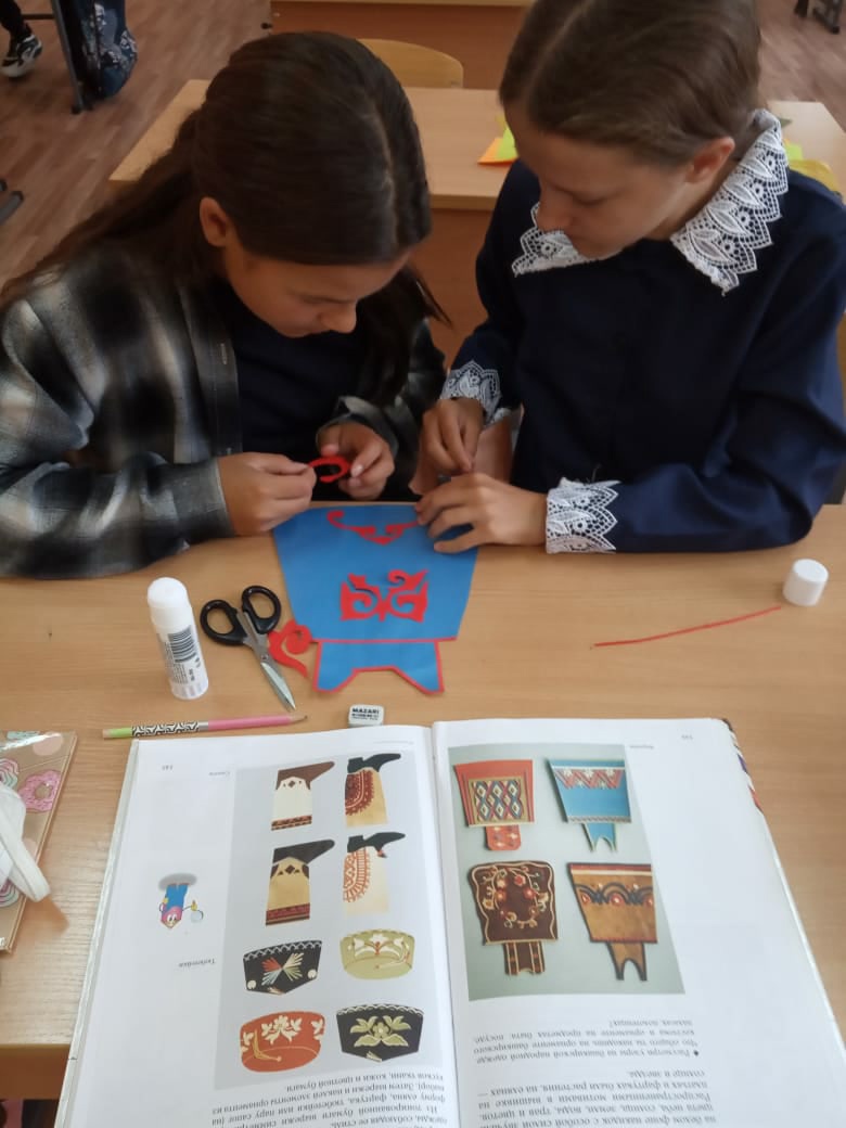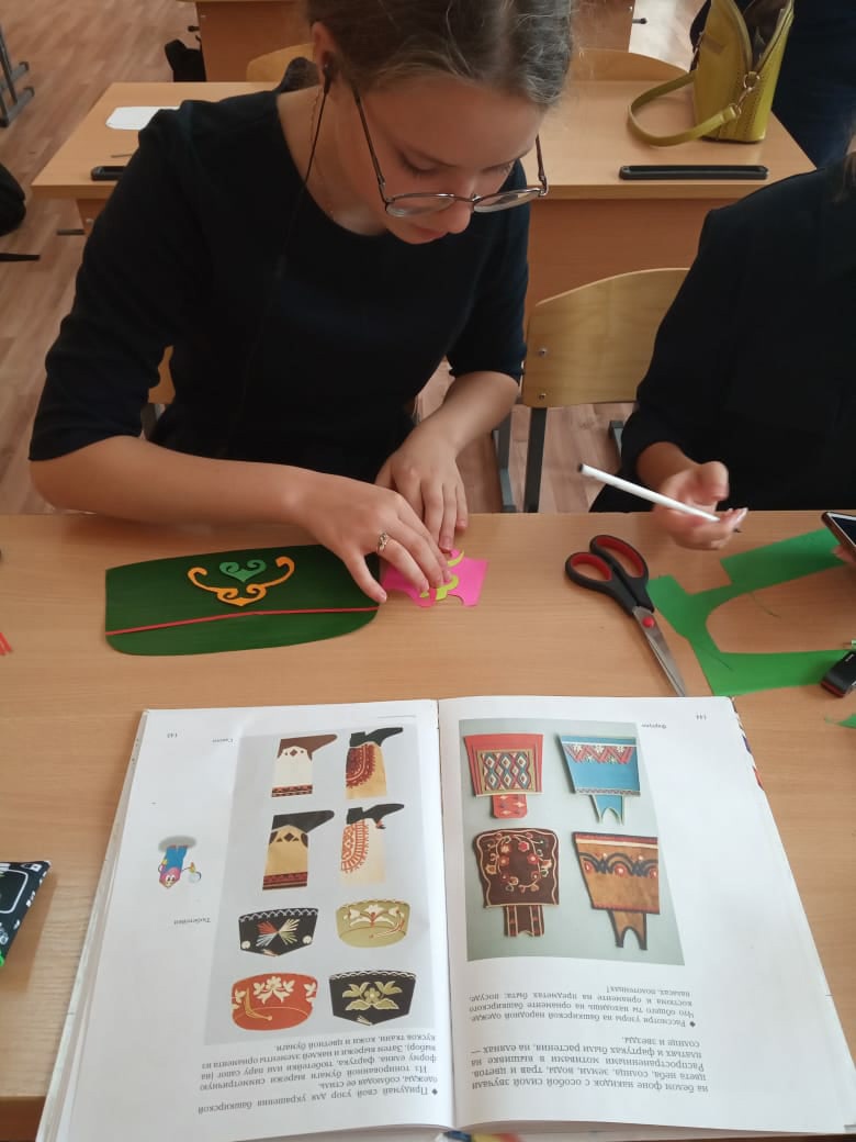 Учитель изобразительного искусства Крестьянинова Надежда Александровна познакомила обучающихся 7, 8 классов с особенностями национальных костюмов народов Республики Башкортостан. Ребята изготовили своими руками элементы одежды различных народов, проживающих в нашей республике.