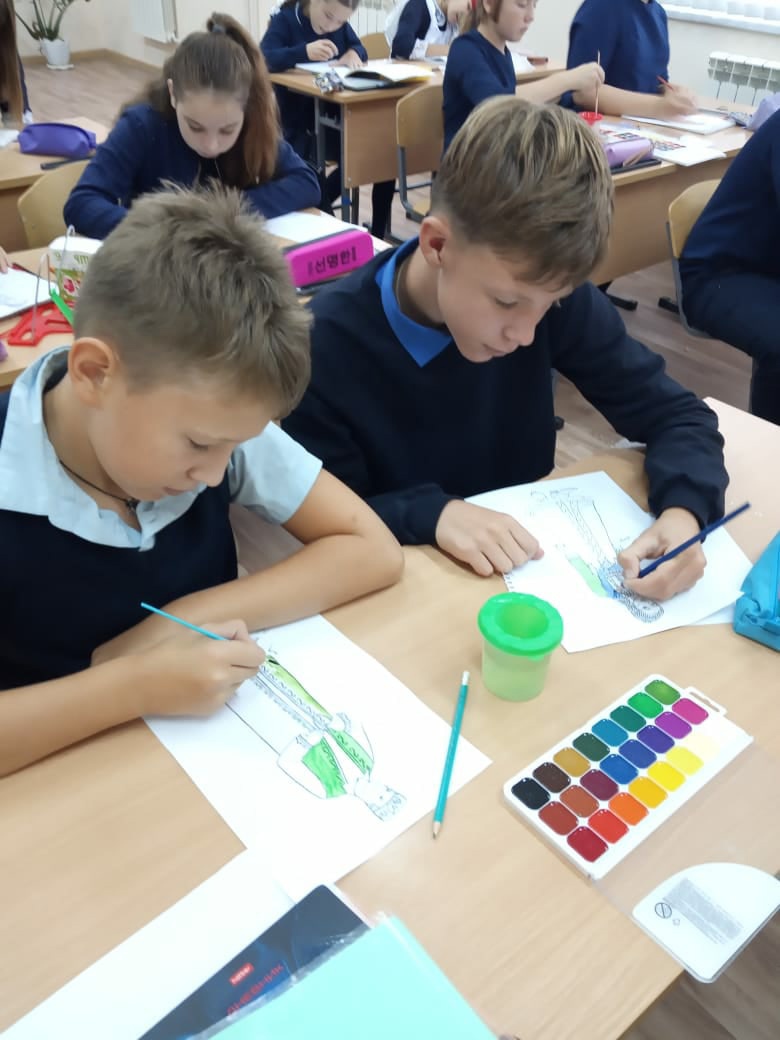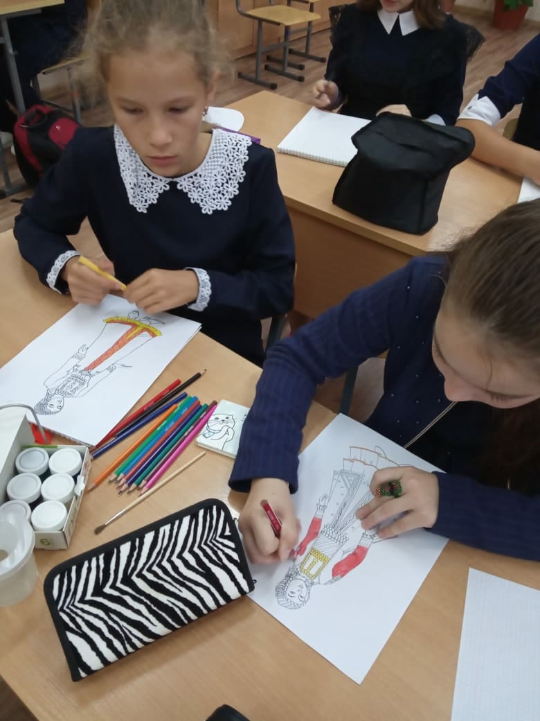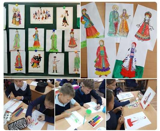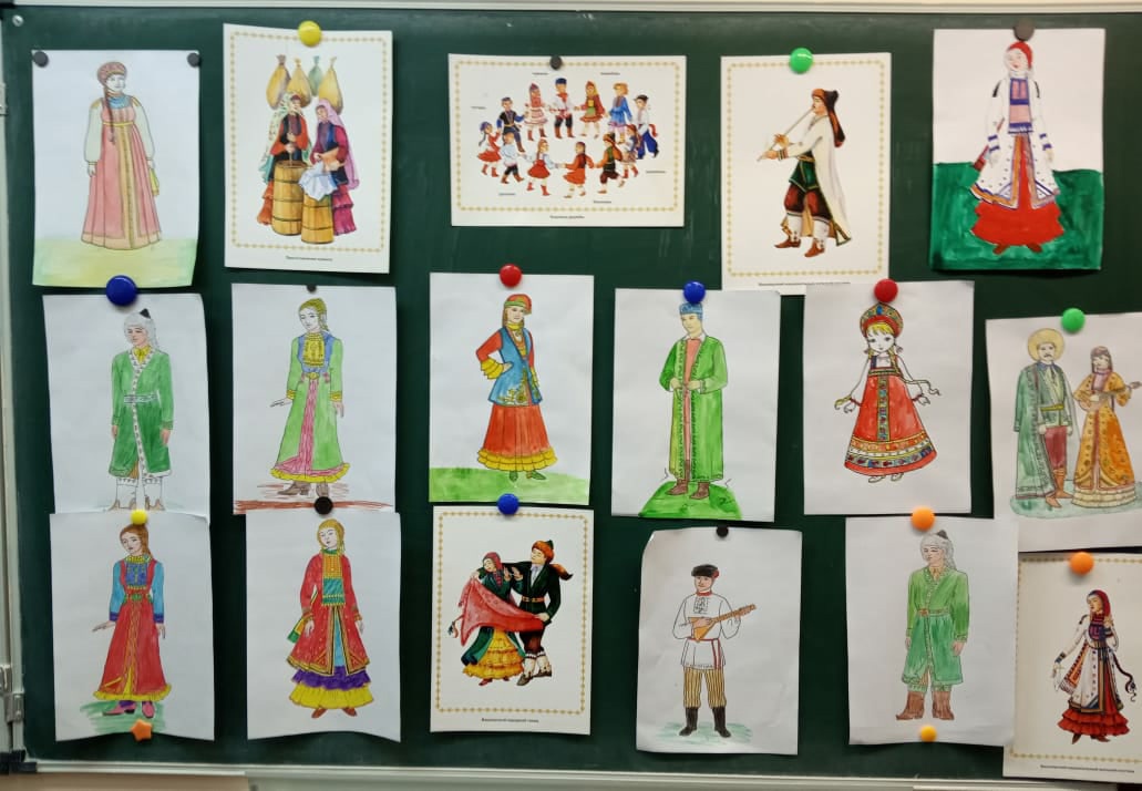Сегодня в 6 классе учитель Крестьянинова Н.А. провела урок рисования, посвященный Дню национального костюма.