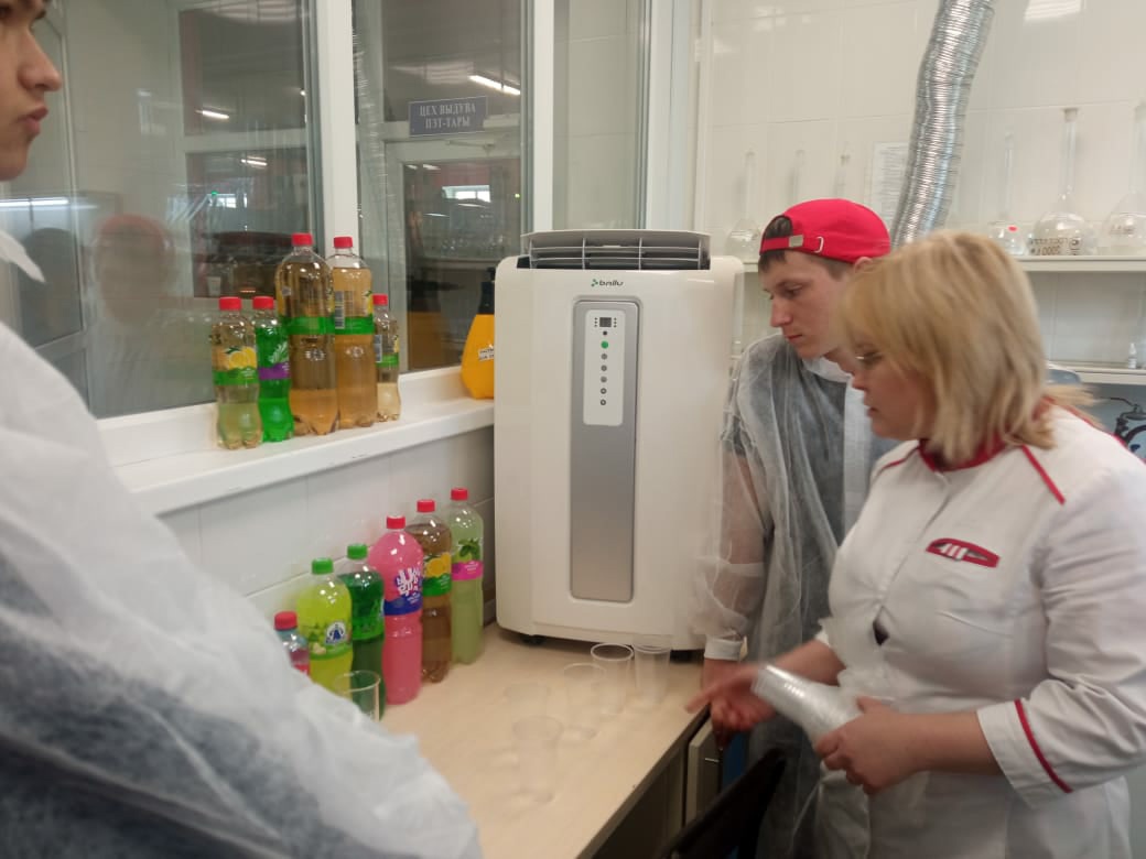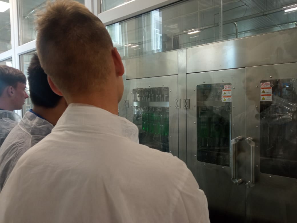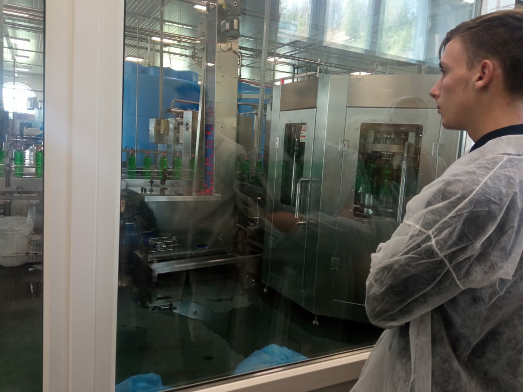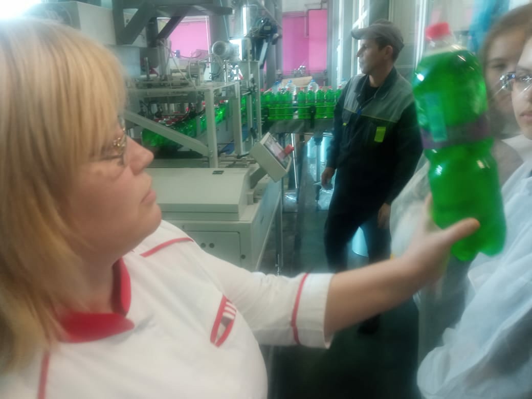 Увлекательную экскурсию организовала и провела начальник отдела контроля качества Кулачкова Марина Анатольевна. Ребята узнали много интересного о профессиях завода таких, как лаборант отдела контроля качества, оператор поточно-автоматической линии розлива, грузчик, машинист выдувных машин (изготовление бутылок), оператор термопластавтомата (изготовление преформ), технолог-контролер, купажист (приготовление купажного сиропа для безалкогольных напитков).