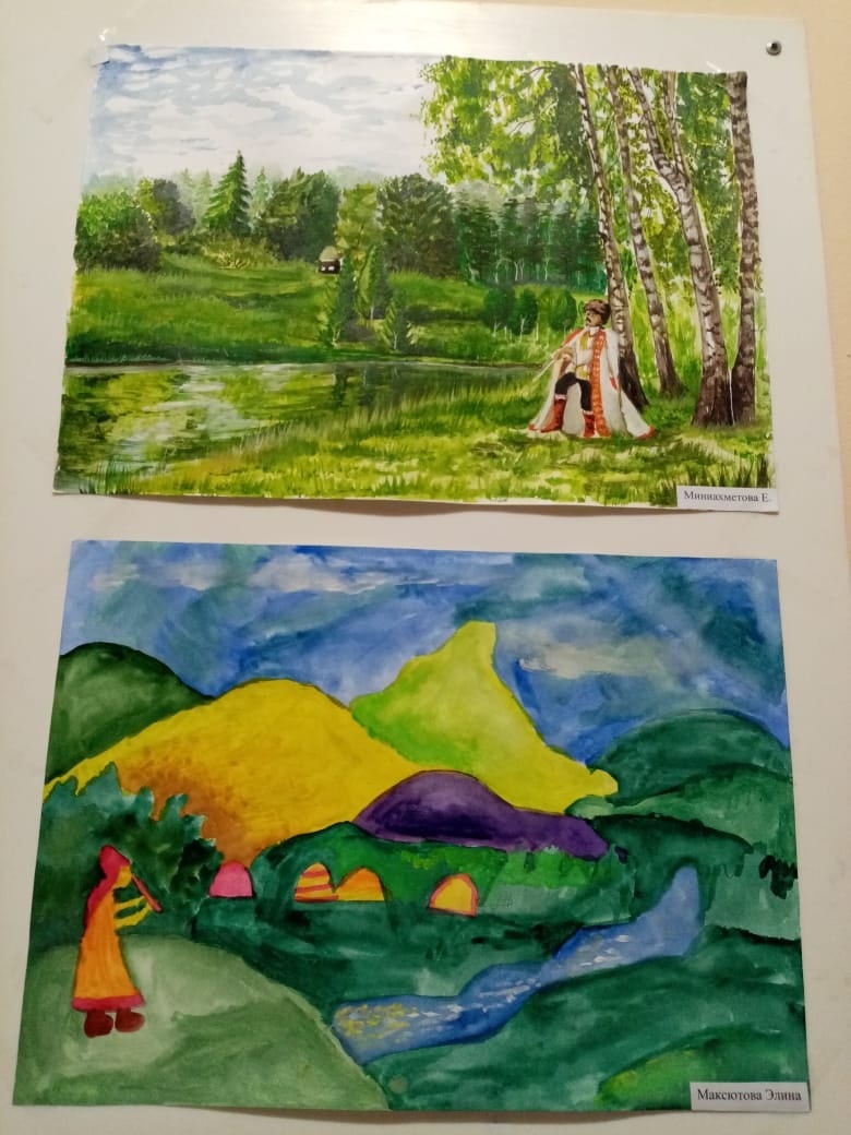 В своих работах дети, при помощи изобразительных средств, передали красоту природы родного края, богатую реками, озера и нетронутыми лесами, чарующую красоту гор.