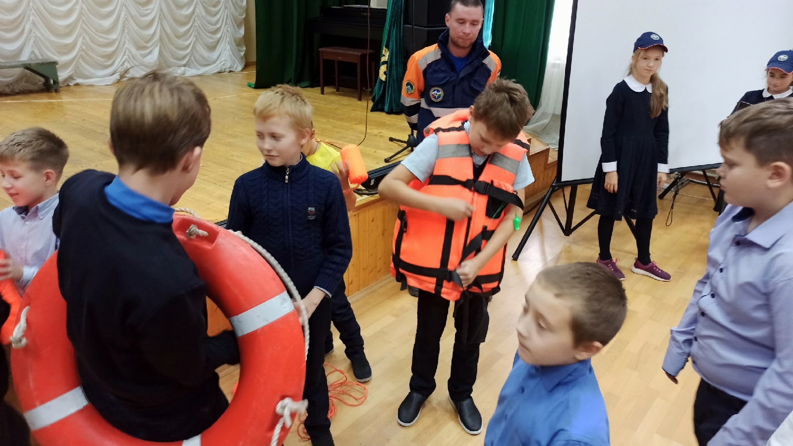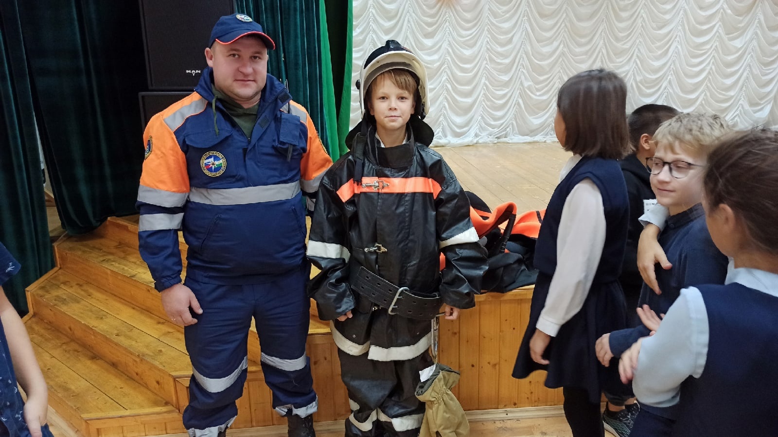 Далее перед учениками выступили сотрудники аварийно-спасательной службы. Они рассказали ребятам о том, что необходимо сделать, чтобы поступить на службу, о своих рабочих буднях, показали аварийно-спасательный инструмент и форму, и объяснили, где и для чего это всё применяется. Кроме того, ребятам вновь напомнили правила безопасности и что нужно делать, если же попали в трудную ситуацию. Затем ученики попробовали себя в роли спасателей.