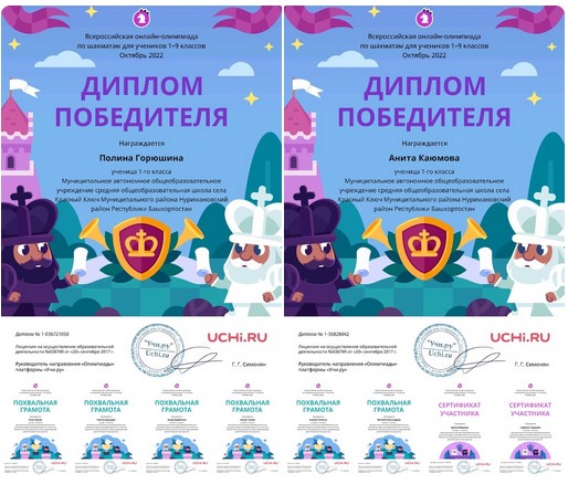 Ученики 1-х классов приняли участие во всероссийской онлайн-олимпиаде по шахматам на платформе Учи.ру.