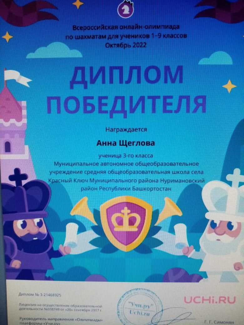 Во всероссийской онлайн-олимпиаде по шахматам, проводимой для учащихся 1-9 классов также определились победители и призеры: