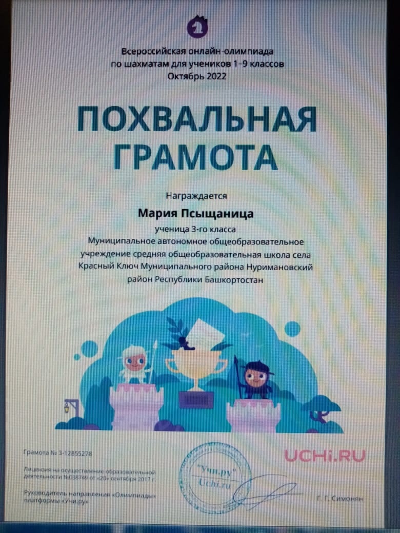 - Похвальной грамотой - Псыщаница Мария.