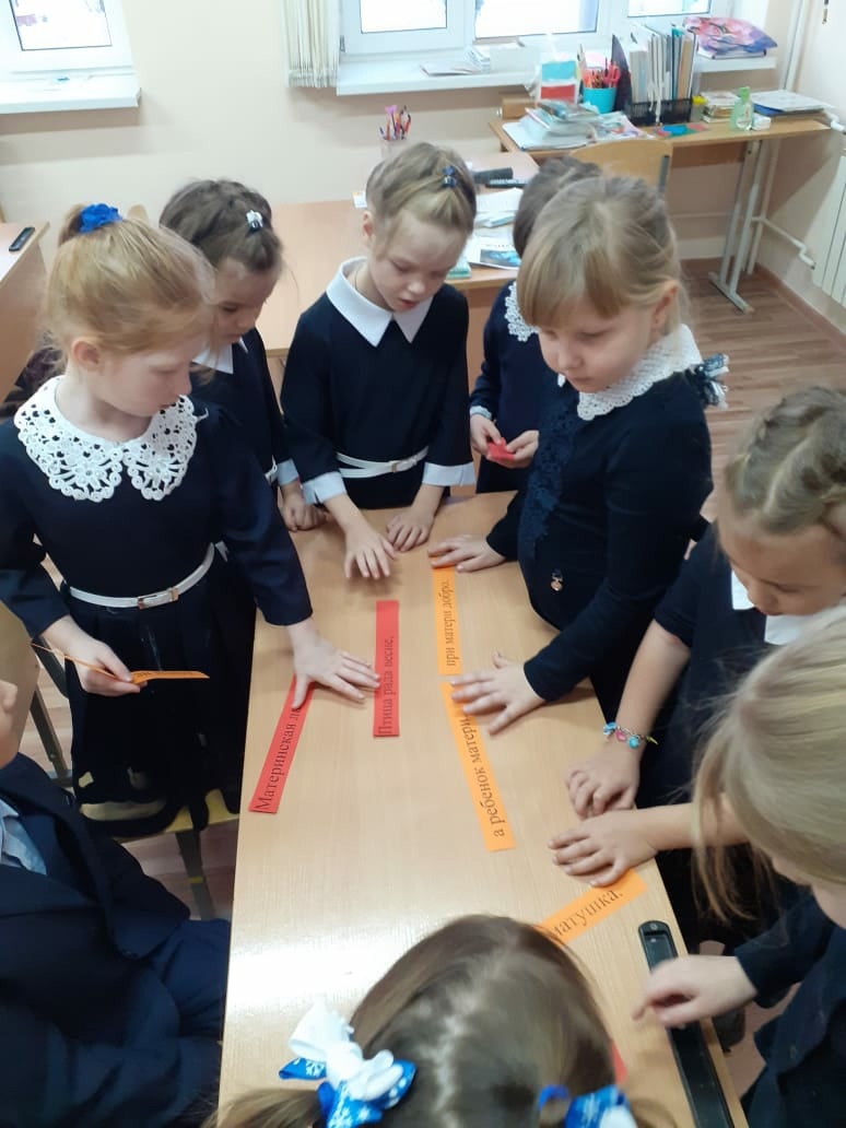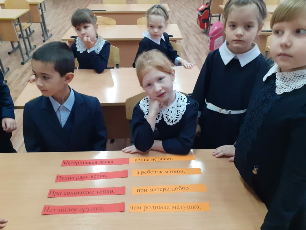 Ребята постарше поговорили об образе матери в фольклоре. Вспомнили поговорки и другие произведения народного творчества.