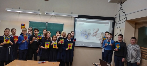 Обучающиеся 1-4 классов узнали, что образ матери всегда вдохновлял художников, писателей и поэтов. Ребята посмотрели репродукции картин великих художников — Леонардо да Винчи, Рафаэля. Дети заметили, что младенцам очень спокойно, и они чувствуют себя в безопасности, когда они на руках у мамы. Ведь «Не найдёшь теплее рук и нежнее маминых…» (П. Синявский).