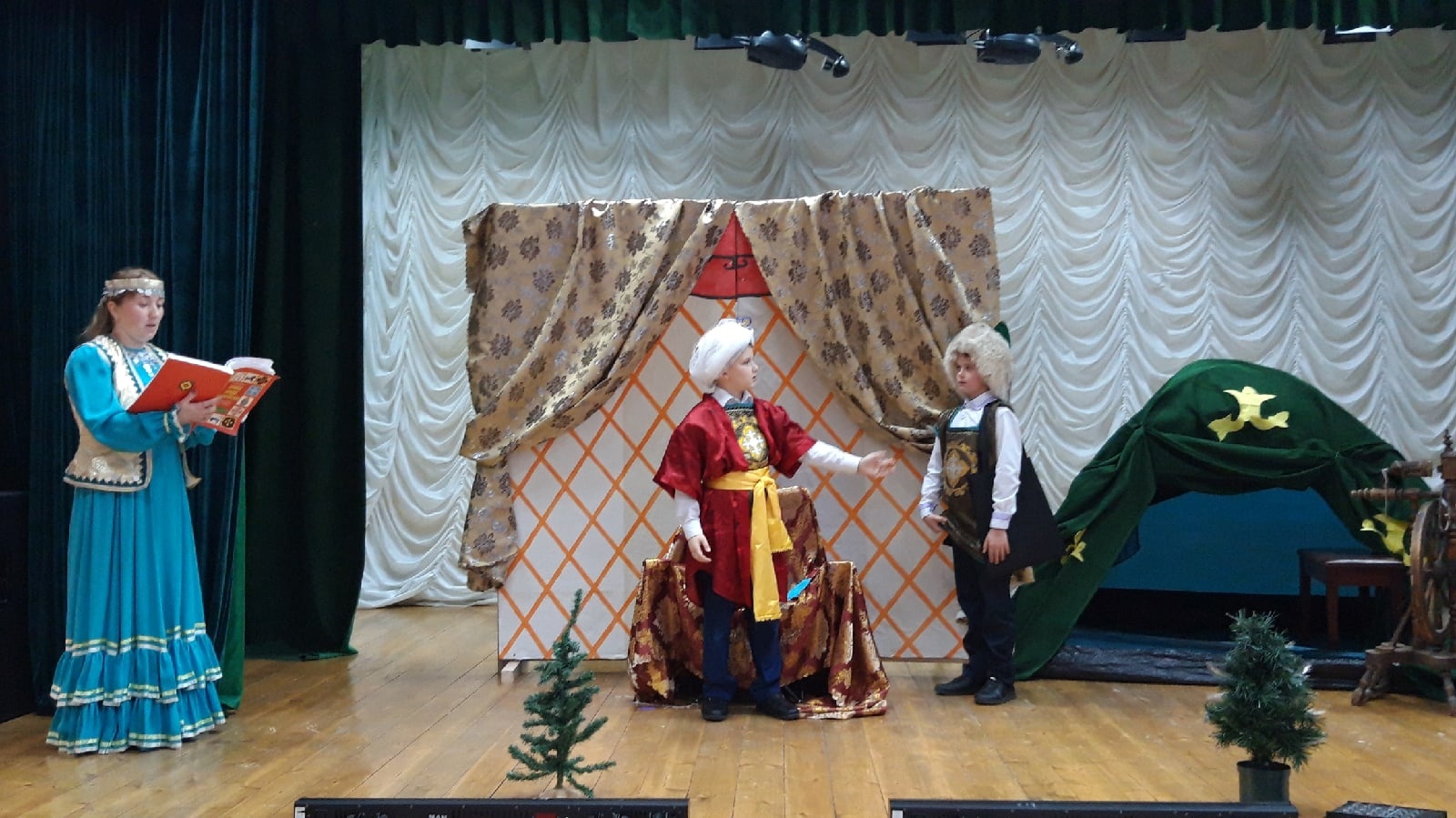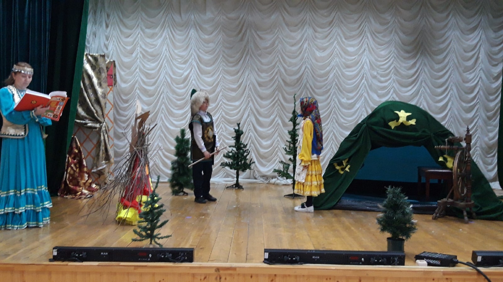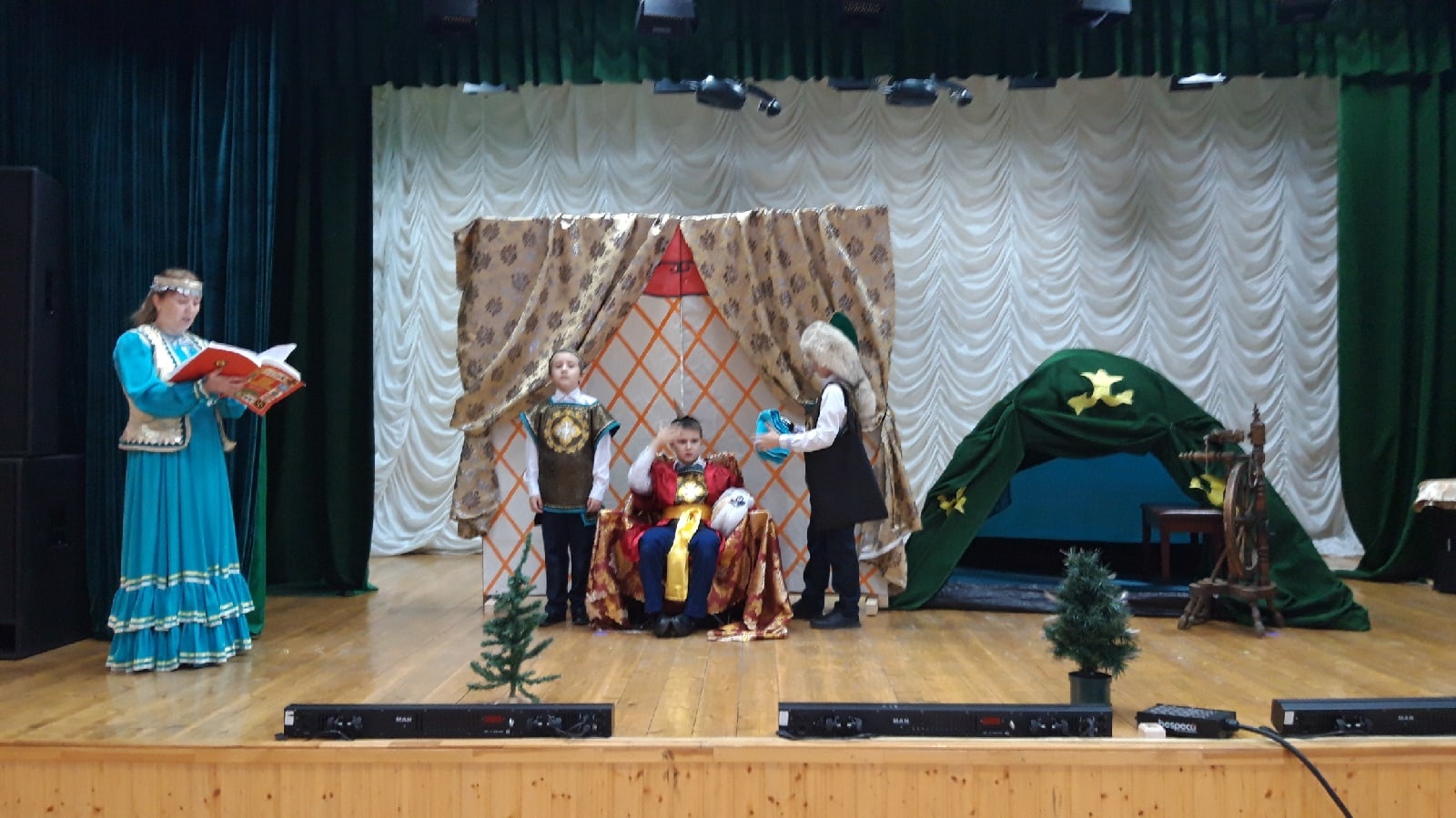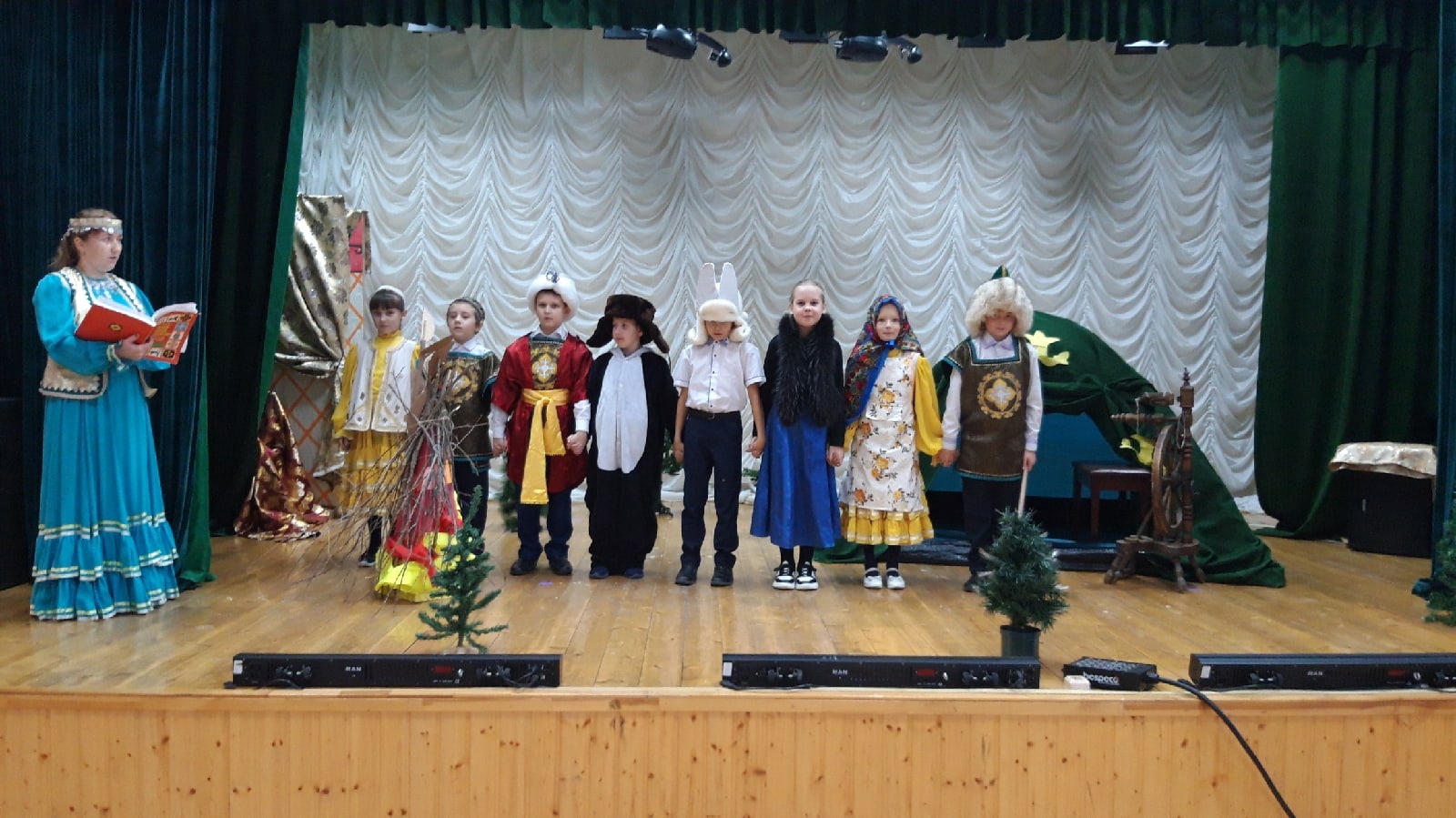 Маленькие артисты театрального кружка "В мире театра", ученики 3 классов, ставили спектакль башкирской народной сказки "Легенда о курае"