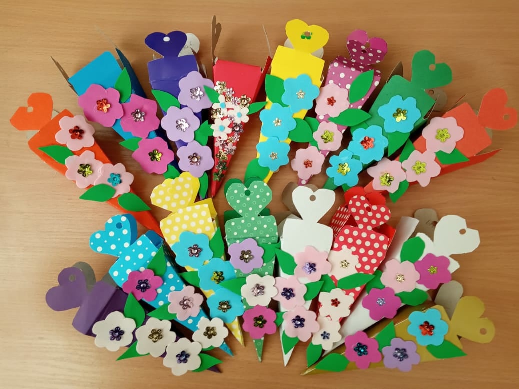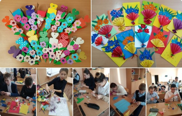 Ученики 7 классов изготовили праздничные сувениры для мам своими руками.
