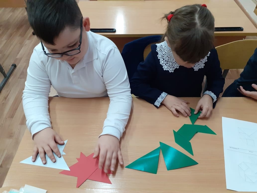 Работы разместили в коридоре 1 этажа, где можно не только полюбоваться ими, но и потренировать смекалку, внимание.