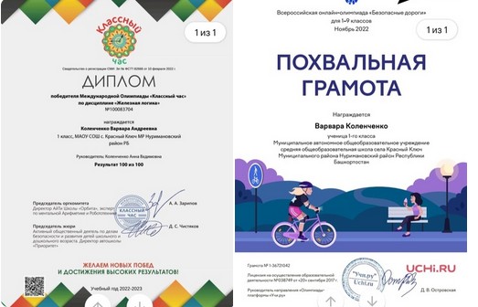 Каждый из нас свободным временем распоряжается по-своему. Первоклассница Варвара старается каждую свободную минуту использовать рационально. Доказательством тому дипломы, грамоты, сертификаты творческих и интеллектуальных конкурсов и олимпиад. Молодец, Варвара! Новых тебе побед и достижений высоких результатов.