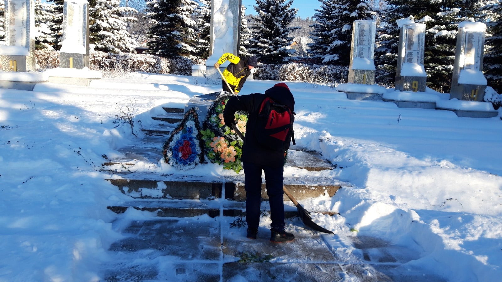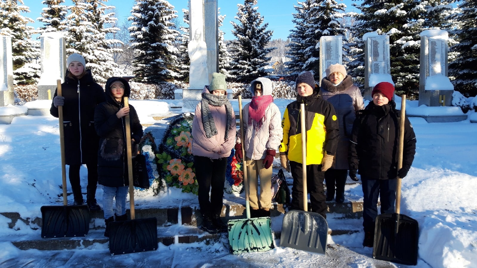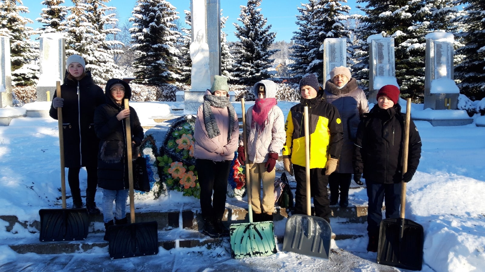 #школакрасныйключ #вахта_памяти #субботник Обучающиеся 8б класса почистили от снега памятник "Скорбящая Мать"
