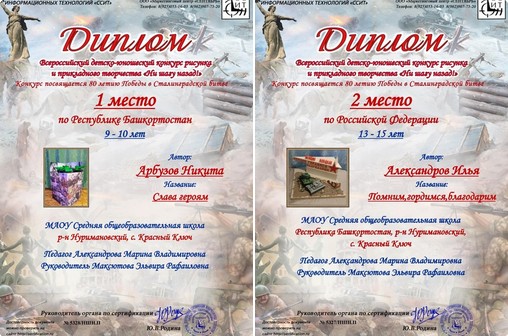 Поздравляем участников Всероссийского детско-юношеского конкурса рисунка и прикладного творчества "Ни шагу назад!", посвященного 80-летию Победы в Сталинградской битве.