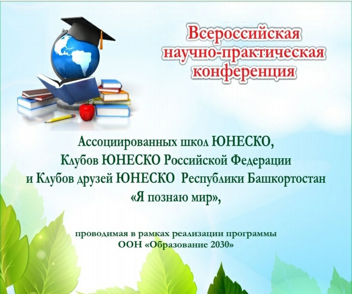 16 декабря 2022 года ждем коллег и друзей на V Всероссийскую научно - практическую конференцию Ассоциированных школ ЮНЕСКО, Клубов ЮНЕСКО Российской Федерации и Клубов друзей ЮНЕСКО Республики Башкортостан "Я познаю мир", проводимую в рамках реализации программы ООН «Образование 2030» и посвященную Году культурного наследия народов России в Российской Федерации.