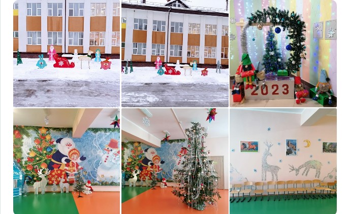 Чтобы создать атмосферу праздника, ежегодно в детском саду сотрудники оформляют новогодние фотозоны, украшают музыкальный зал для утренников, а также возле входа на улице можно сфотографироваться возле сказочных героев.