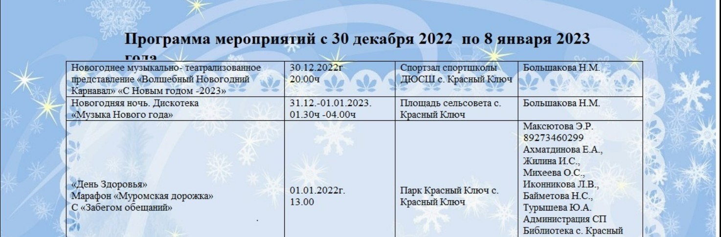 План новогодних мероприятий
