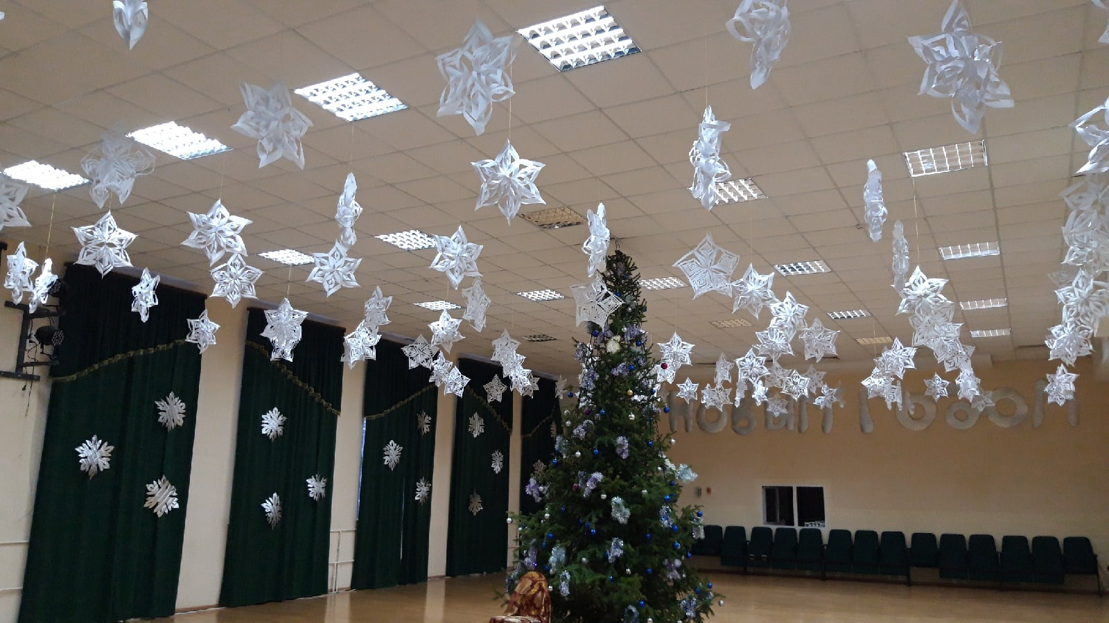 Чтобы создать атмосферу праздника, ежегодно в нашей школе проходит акция «Украсим школу к Новому году». Масса положительных эмоций и веселых идей появляется у ребят, педагогов и родителей, которые стремятся сделать праздничную атмосферу в родной школе. Немножко фантазии, и строгие школьные стены превращаются в новогоднюю сказку. Учащиеся нашей школы с огромной радостью и восторгом занимаются украшением своих кабинетов, коридоров, окон и ,конечно же, красавицы – ёлки, создавая праздничное новогоднее настроение.
