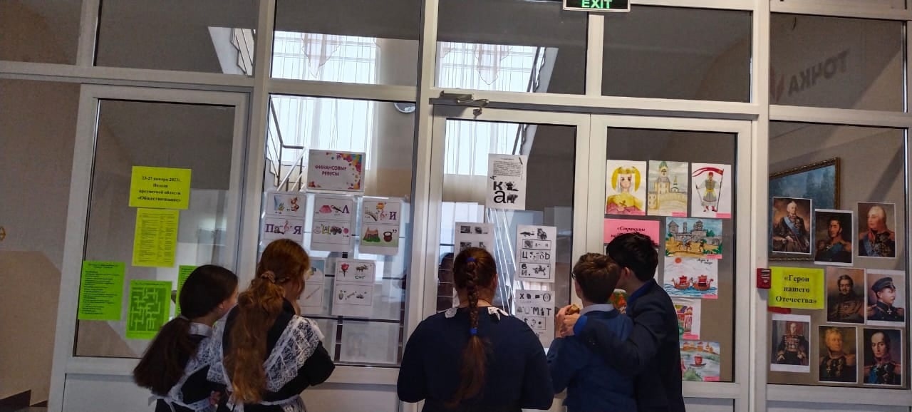 С 23 января в школе началась Неделя предметов образовательной области "Обществознание". Основные задачи, которые решает предметная Неделя: вовлечение обучающихся в самостоятельную творческую деятельность; повышение их интереса к предметам: история, обществознание, право, география, биология, экология; формирование гражданственности и патриотизма. В каждый день Недели запланированы мероприятия, позволяющие в полной мере реализовывать поставленные задачи. Сегодня ребята приняли активное участие в викторине по финансовой грамотности. С целью расширения кругозора, а так же для развития логического мышления, для ребят оформлены стенды с ребусами и кроссвордами по истории и обществознанию. Ответы на предложенные задания принимают учителя истории и обществознания в течение недели. Также в фойе оформлены выставки рисунков учащихся 5-7 классов ""Страницы родной истории" и "Санкт-Петербургу 320 лет".
