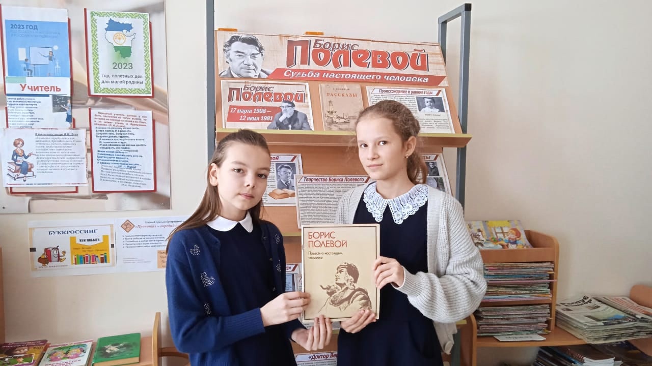 В рамках недели детской и юношеской книги для учеников 6 класса был проведён урок мужества специалистами Красноключевской сельской модельной библиотеки Сазоновой Н.В. и Даниловой Н.В., который посвятили 115-летию со дня рождения Бориса Николаевича Полевого.