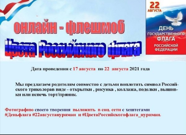 ОНЛАЙН - ФЛЕШМОБ «Цвета Российского флага» (с 17. 08.2021 по 22. 08.2021)