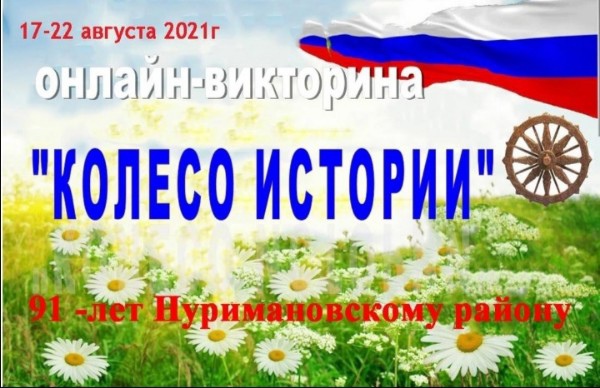 В рамках празднования 91-летия образования Нуримановского района Комитет по делам молодежи физической культуре, спорту и туризму совместно с МБУ ТСМЦ «Нуриман» запускает онлайн викторину «Колесо истории»