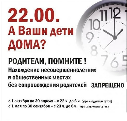 Не допускается нахождение детей в ночное время без сопровождения родителей (лиц, их заменяющих)