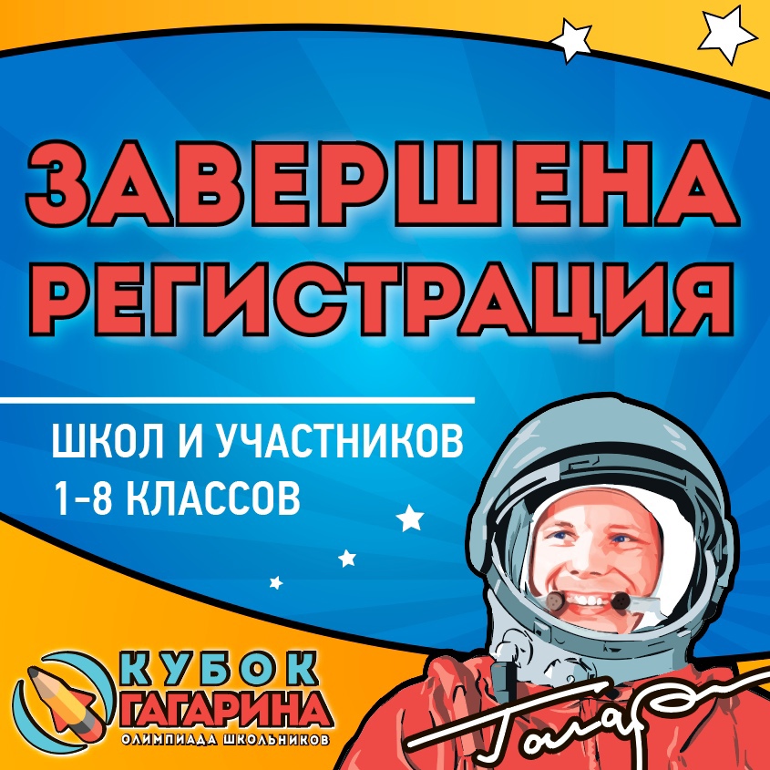 ЗАВЕРШИЛАСЬ РЕГИСТРАЦИЯ участников Олимпиады школьников на Кубок имени Ю.А. Гагарина (1-8 классов)!